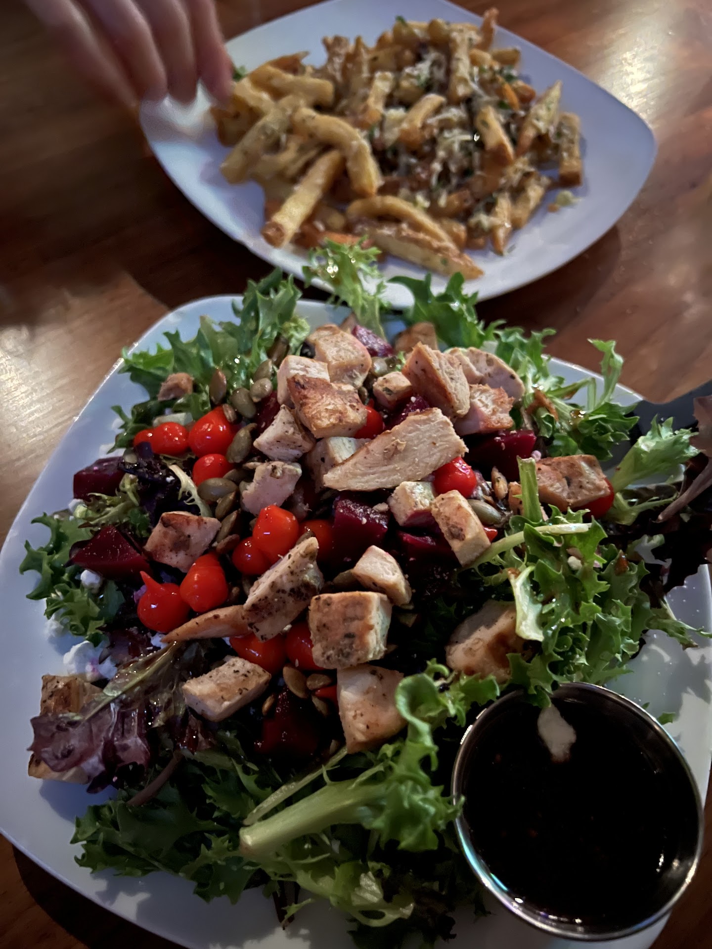 The cons: -it’s a bit pricy (but isn’t everything these days?) -the new shampoo-style plastic bottles they use for water. They’re pretty unappetizing -lack of a solid vegetarian salad option (my go-to squash salad was taken out of the rotation with the ownership change and replaced with a beet salad - it’s just not as tasty or flavorful. We’d honestly come way more often if there was a better option here.)