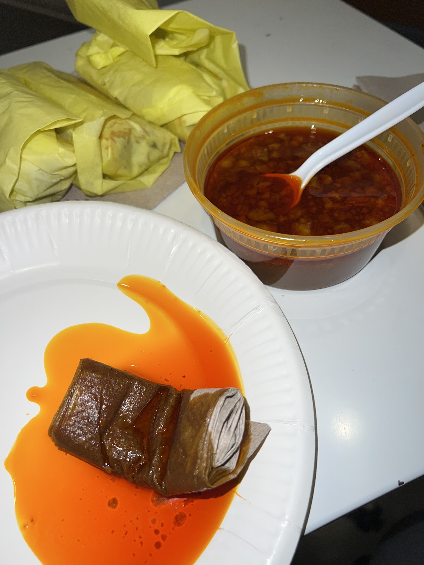 Read moreGreat flavors, really consistent pricing, and big servings! I got the birria tacos, and they were good, but the tortillas could’ve been cooked or fried in the soup/sauce (they were just regular tortillas) and the soup was INCREDIBLY OILY and GREASY. Pictured is the second wad of paper towels that I used to soak up all that grease. I tried to spoon it out and eventually just gave up, I couldn’t make a dent in that thick layer of grease. When the soup kind of sat out and got a little colder, the grease started to harden and that’s when I knew it wasn’t just oil. You can even see the separation between the oil/grease and actual soup on the spoon in...