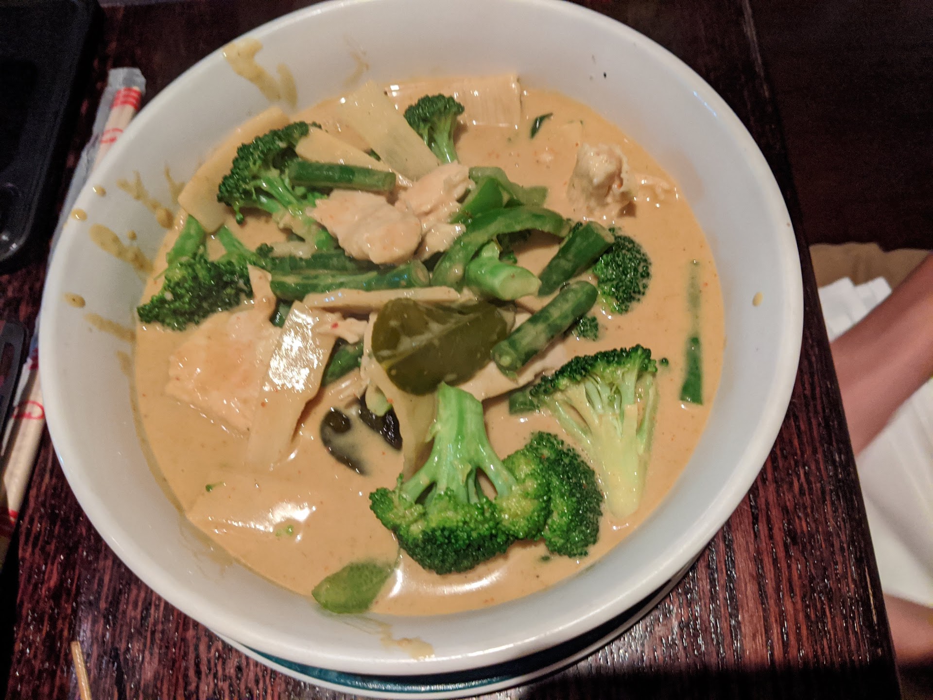 Usually, Thai food is naturally gluten free, but, prior to ordering I called and asked if certain curry dishes were gluten free. I was told by the woman on the phone that EVERYTHING is gluten free. I asked if she was sure, and she said yes. So everyone in my office relayed our orders to our dept admin assistant, and she called it in for the lunch meeting. She was then told that all their curry dishes have gluten in them because of their use of soy sauce, whose main ingredient is wheat flour, in their curries. In the end, I ate food elsewhere that day.