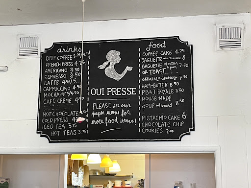 Read moreI really love this neighborhood. We had just visited the yarn store Happy Knits and we're heading out of town when we decided to visit oui presse for hot drinks to take with us. The cafe is lovely and I admired the simple and rustic decor. My partner,children and I were not warmly received. The gentleman behind the counter couldn't even muster a smile. We ordered our drinks and as an afterthought I ordered the PB&J. The gentlemen made an effort to dissuade me from orderind,stating it was not an average PB&J. Apparently they put "butter" (shocking I know) on theirs. I took my "chances" and ordered the Peanut "Butter" and Jelly sandwich. It was delicious. Their manners needed a little butter cause dang the brioche they make...