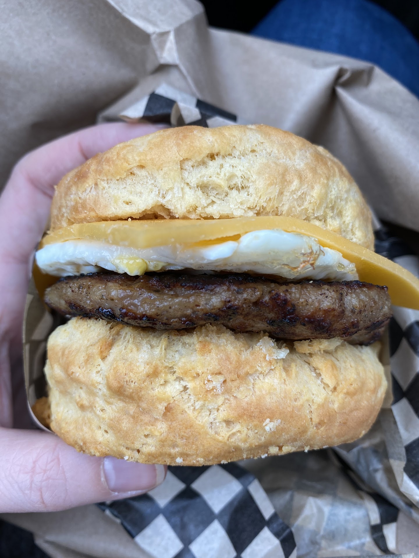 My friend got the sausage biscuits and gravy. The biscuits were not fresh, and the gravy was bland. It had a weird texture, and there was very minimal sausage. The off-gray color was not appealing to the eyes nor the palate.