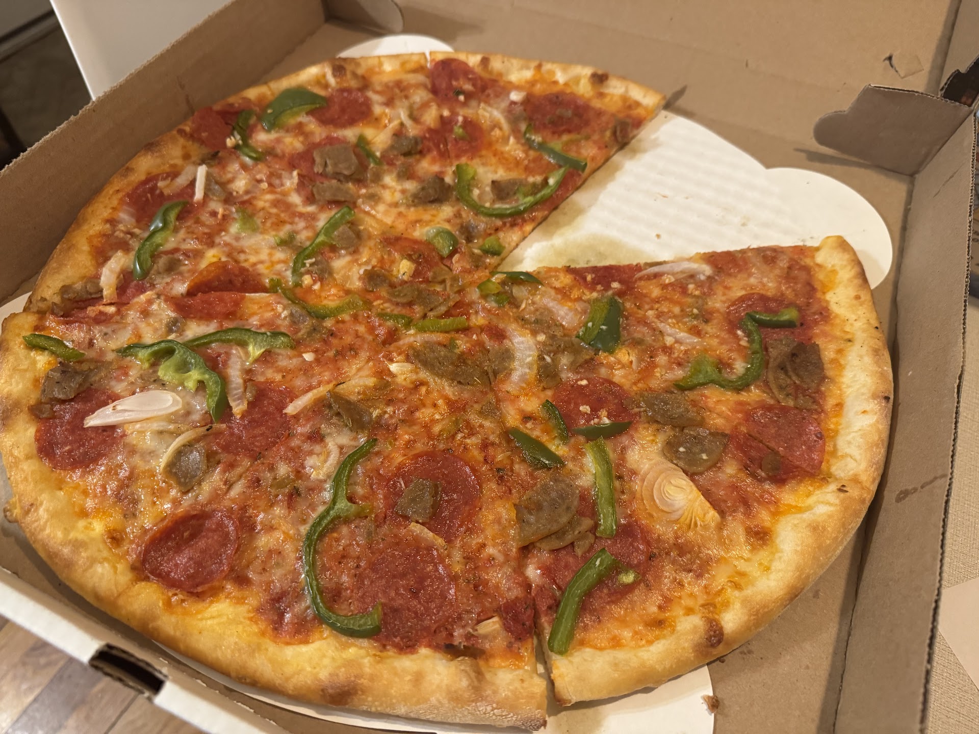 Read moreI tried to place an order 15 minutes before closing, and the store refused the order...waiting almost 10 minutes after it was placed saying that "they had no drivers available." Which honestly sounds like a cop out because the order was placed late. I'm sorry, but I used to work at a pizza place before and that's poor management if you don't have drivers up until close. The online ordering platform, Slice, gave me a number to call if I still wanted to pick up the order. So I called the number and spoke with a Slice representative, who in turn called the store to see if I could pick it up. By this point, so much time had passed from when I originally placed the order, that the store was 1 minute from closing. They told the slice representative that their ovens were "already cleaned" and therefore couldn't fulfill the order even if I picked it up. Okay so you say you are open until midnight...But don't have the drivers scheduled to deliver until then....and then turn the ovens off AND clean them before midnight even hits? Why do you say you are open, when you clearly have been closed for a while? If the ovens are clean, then you had to had turned them off a while ago so they would have had time to cool down. That means way before midnight. If you aren't going to fulfill orders until midnight, don't advertise as being open until midnight. Won't be ordering again since I can't trust if my order...