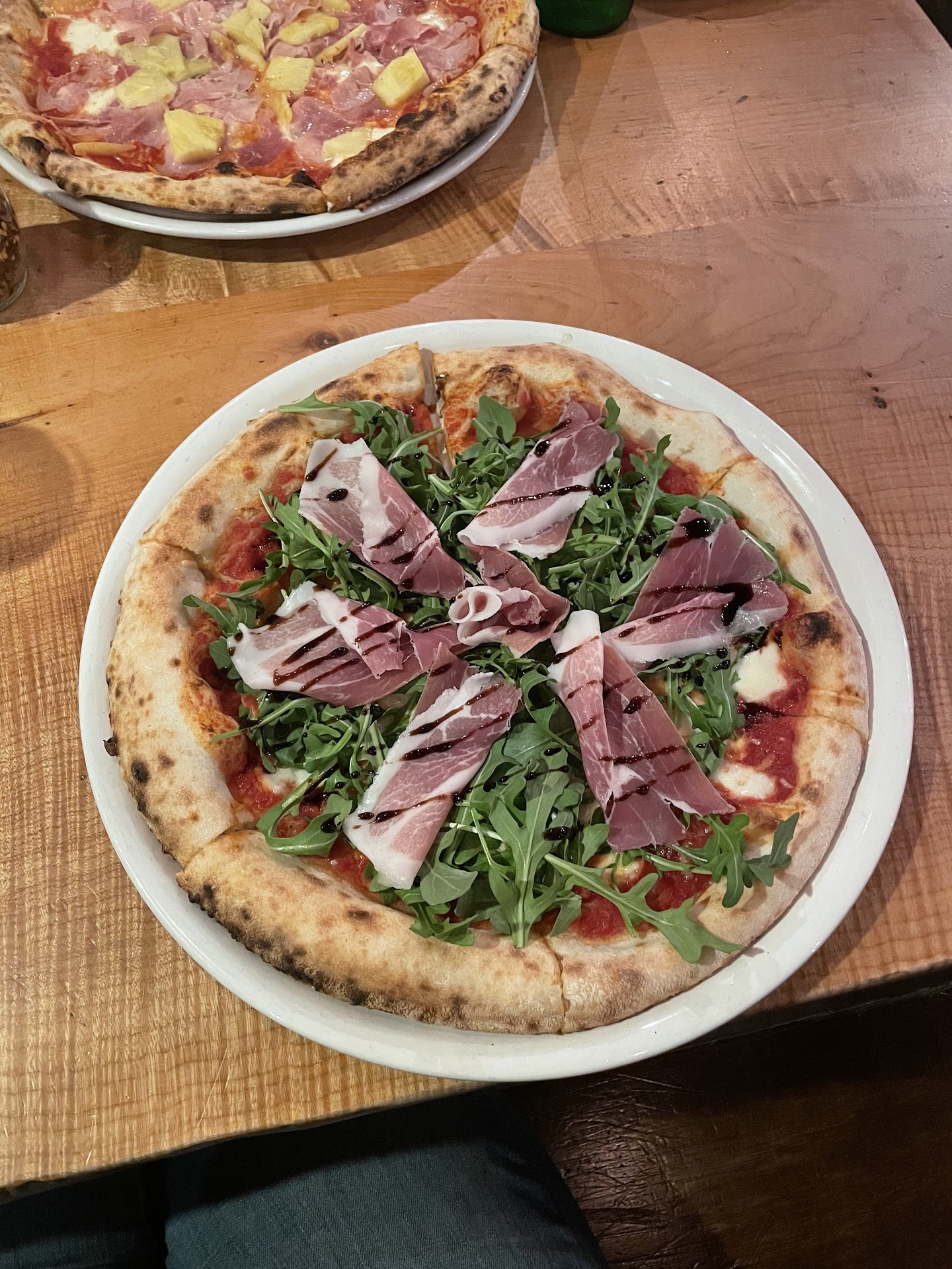 Read moreI’ve tried two pizzas here this week, roasted veggies and garlic bread. Each order was after 4pm. The first one was good ! It was a sausage and mushroom and the roasted veggies were really good, only real complaint with them was that they were too Burnt, same complaint with the garlic bread, the bread was too burnt on top, each bite was filled with a hardcore charcoal taste that would kill the flavor. The sauce that came with the bread, which was manera tasted like - honestly honestly- watered down salsa, I caved and used ranch to try and salvage it. We ate 2/4s of it. The second pizza was just flat out - idk it just seemed like it was going to be really good but wasn’t. The speck and arugula pizza, just not enough flavor. All in all it falls down to the price, the total of all these items spread by two orders was $65. That’s where the super stingy red pepper flakes turned us off. I didn’t check how much they gave me because I assumed it would be an ample amount but based on the picture - I’d say it’s just a waste of a plastic container.