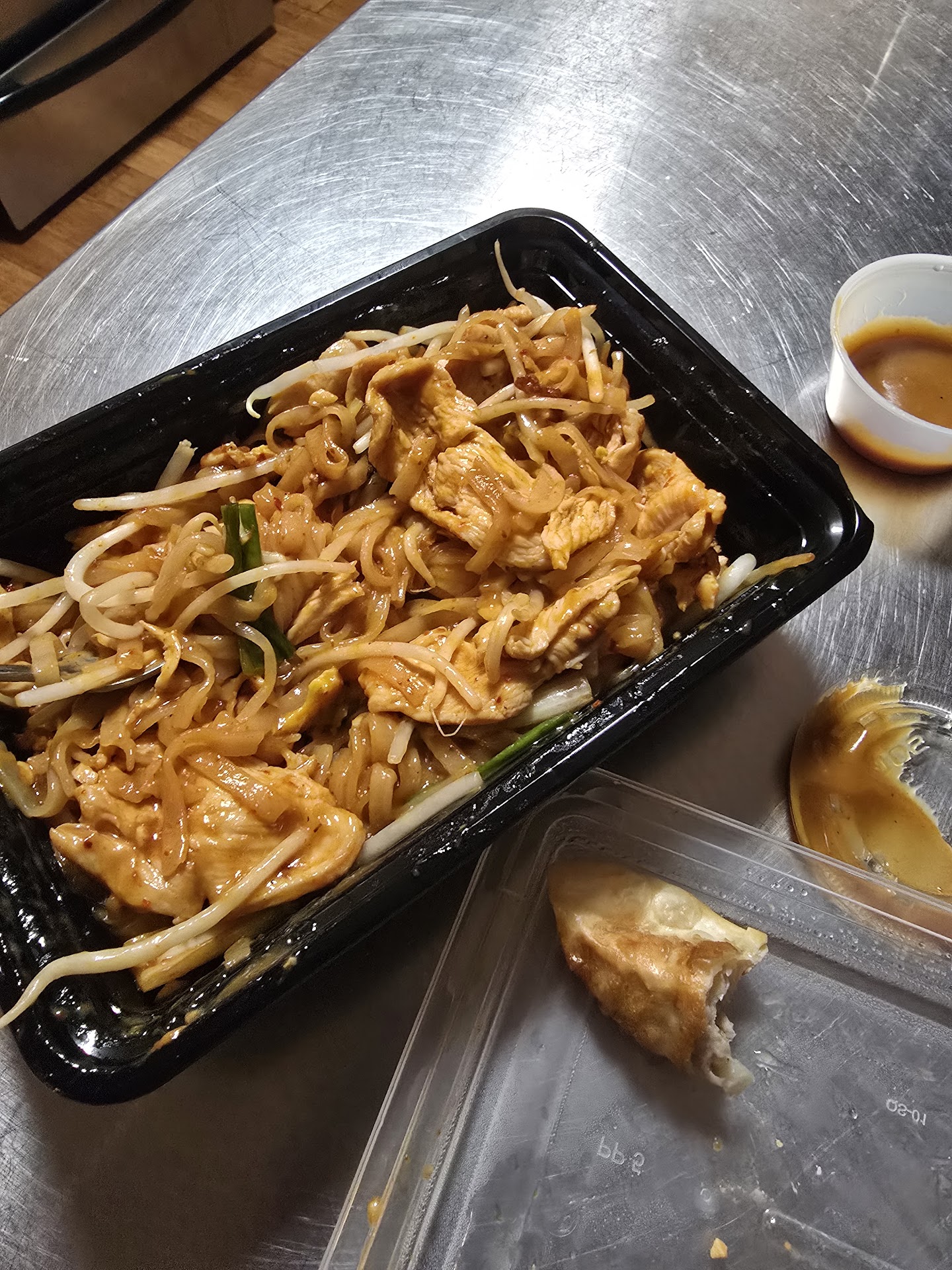 A huge menu with lots of different options, there is something for everyone! Their curries are particularly delicious and they have a large selection as well as creative and festive specials, and they don't skimp on the meat! Note that the spicier you get it they just add more chili flakes. Their prices are reasonable and the portions are pretty big (very filling). In addition they're really quick to have your food ready even when they're busy, so you never have to wait long. The salad rolls are generally immediately ready and very filling and delicious, I didn't even like tofu until I got hooked on those rolls! (Perfect for in a rush or on the go). The Thai Tea is very popular, delicious, and cheap as well, I recommend it.