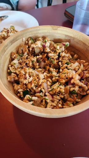 Chat Pat - puffed rice salad, sort of? Puffed rice, peanuts, onions, cucumber, crispy noodles, and a light vinegar, heavily herbed/spiced dressing. Really wild, loved it, never had anything...