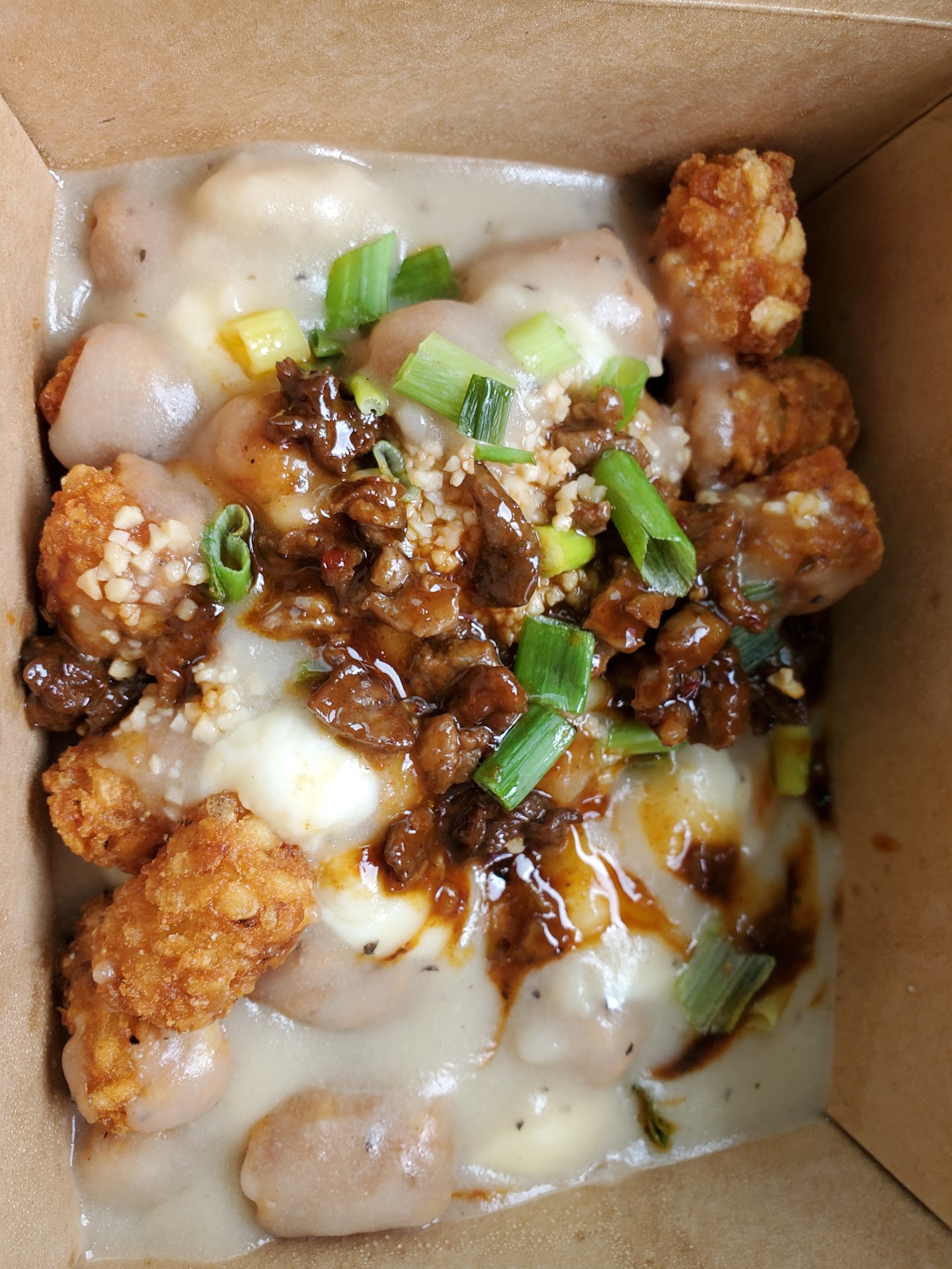 Cons: -Thick unseasoned gravy that get thicker as it cools offers no taste and leads to unpleasant texture of poutine. -Curds were too large in most cases and often dry, did not have good squeak. There was not enough curds to have one in every bite. -fries were undercooked for this application and did not stay crispy long enough to finish eating before soggy.