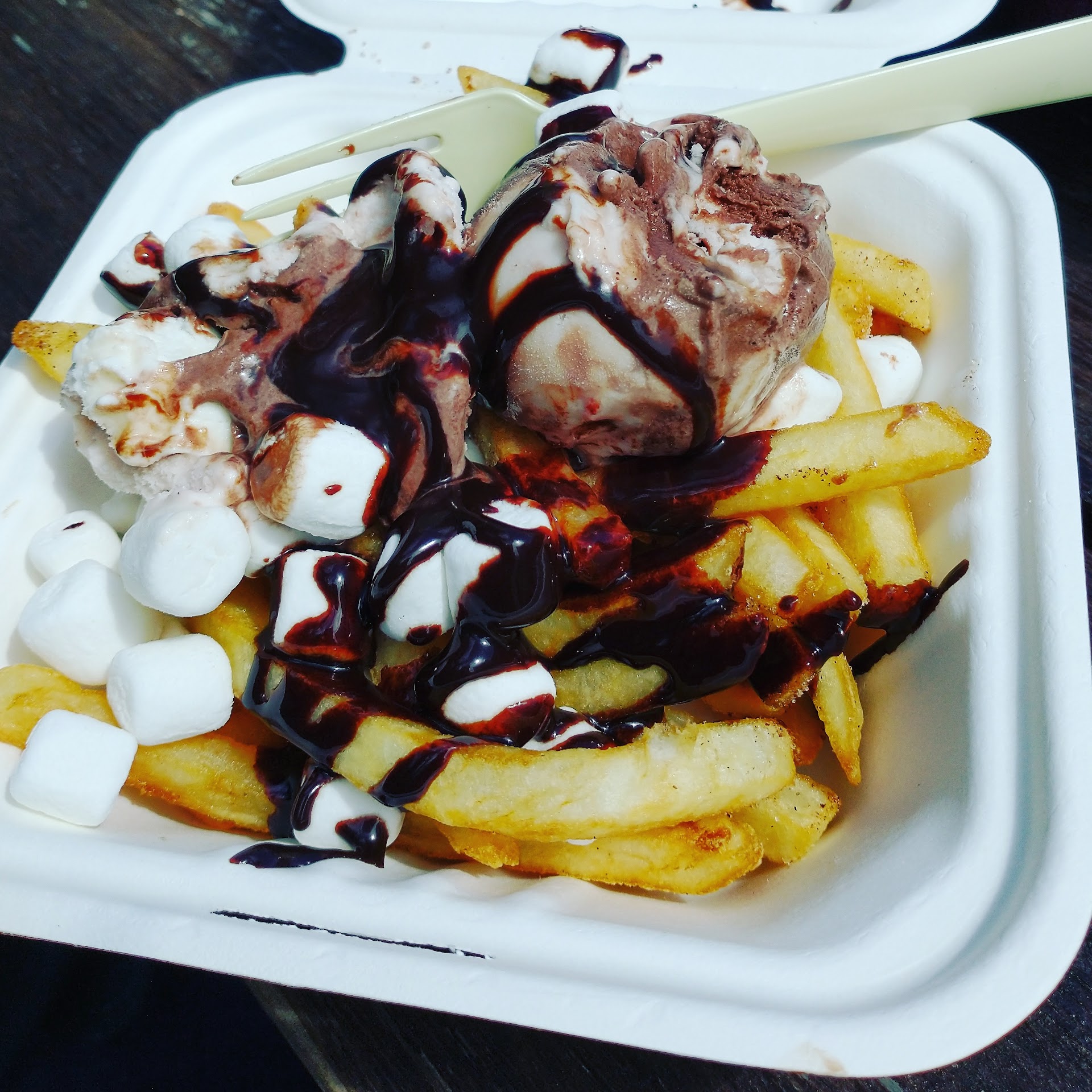 A lot of reviews are complaining about the fries going "soggy," but we ate ours before we left & they were fine. Any poutine goes soggy the longer you let it sit, so maybe the other reviews ordered it to-go? Idk...