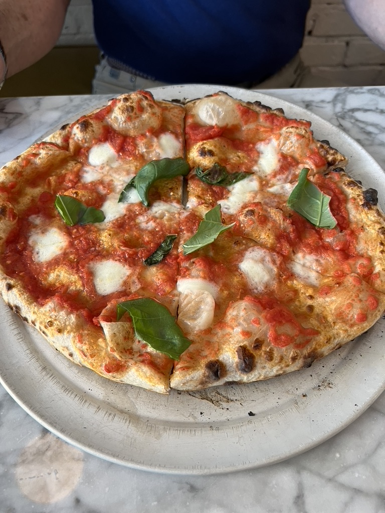 The dough of the pizza was not impressive; it seemed like the levain didn’t work enough, so the crust was a bit soggy and slightly chewy. And yes I understand it's a sourdough base. The burrata was really cold and firm and should have been out of the fridge before serving. Just a nice stracciatella would have been much better. That said, the rest of the ingredients were spot on.
