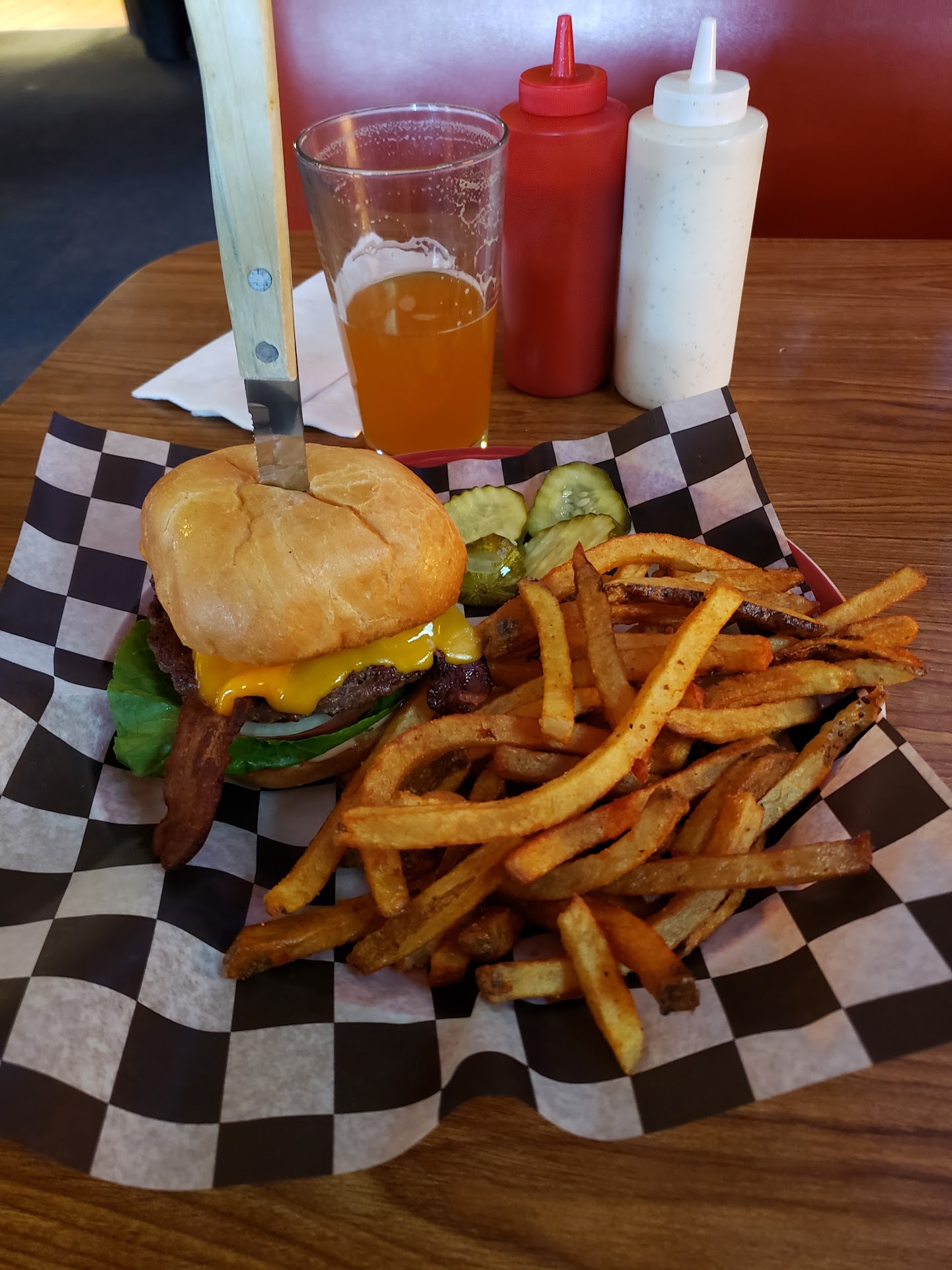 Read moreSeriously folks. For a dive bar setting the bar tender was super nice and friendly as well as accommodating. She was already helping out some of the regulars and dealing with a POS that was on the fritz. Without even turning around she sensed my presence and assured me that she would be right with me. Half of the taps were being cleaned so I chose a hazy IPA instead of first choice. It was not too busy when I sat down with my pint. The kitchen got an order and I soon began to smell the awesomeness and got hungry. I ordered a bacon cheeseburger and it did not disappoint! The burger was perfectly cut and portioned with condiments enough to accompany a burger of such stature. The fries were made in house with a natural cut and cooked to perfection. I had a great conversation with the cook regarding his obvious love for what he does. Needless to say that I will be returning to this joint when I am on this...