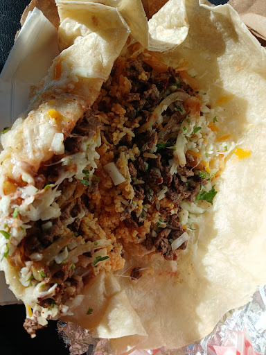 Read morefirst time here, theres nothing wrong with the carne asada burrito. i got it with no sour cream & added lemon & green salsa. it was $11, which beats every other mexican place around here by $5. the tortilla actually had some flavor & chew, which i havnt noticed in any of the other shops that sell burritos. the carne asada is trimmed & not fatty. they do use large pieces of onion, but its caramelized so its not just a raw bitter chunk like in the other shops. the cheese was melted properly, unlike all the other shops around here that just drop cold cheese on before they wrap it up. you should know a bit of spanish if you have any questions for them or want to make conversation. the lady running it was very polite & the food came out quick.