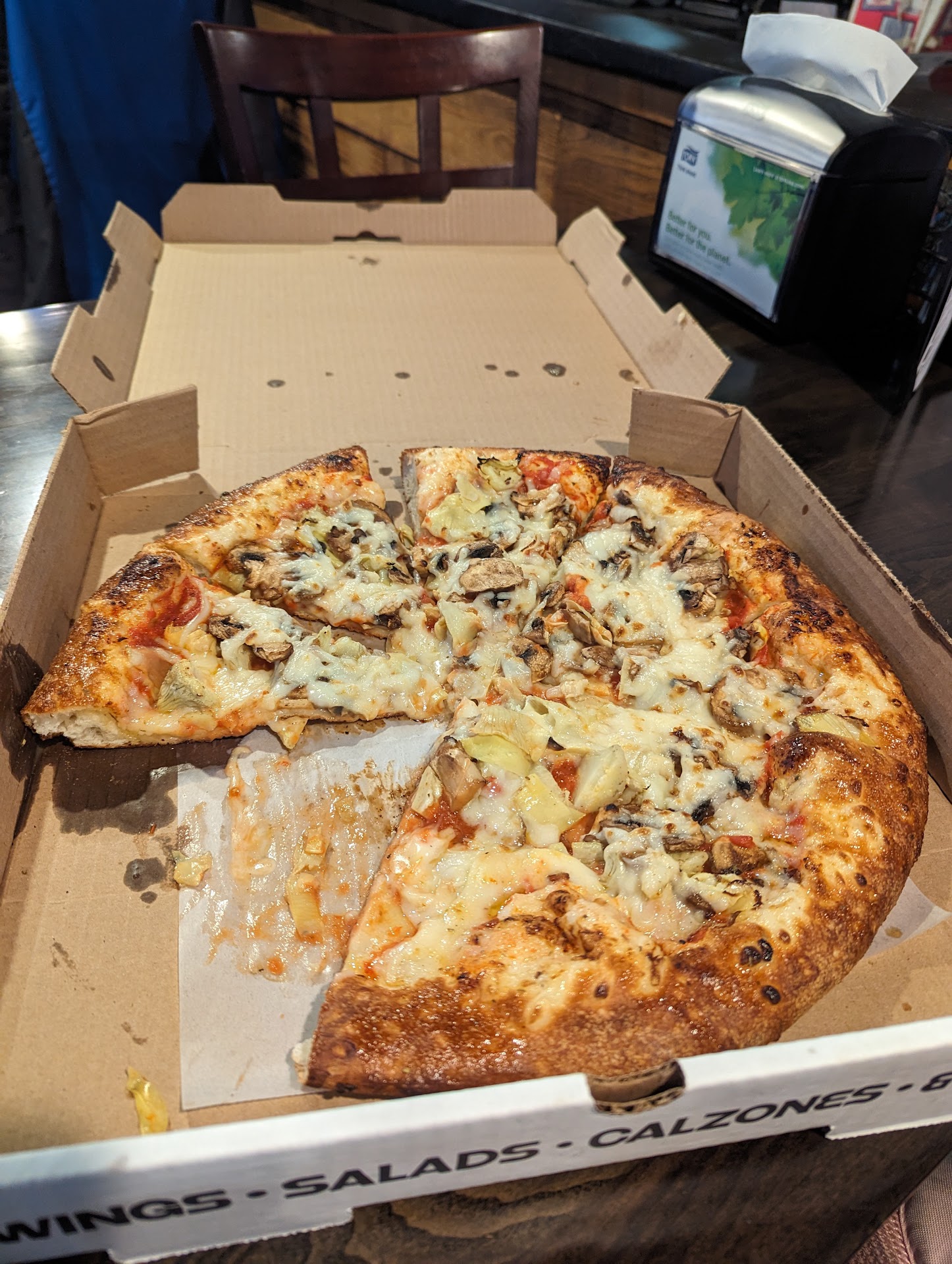 Side note, the reason my pictures contain a pizza box is because I asked for to-go and then decided to dine in. Their presentation is different for...