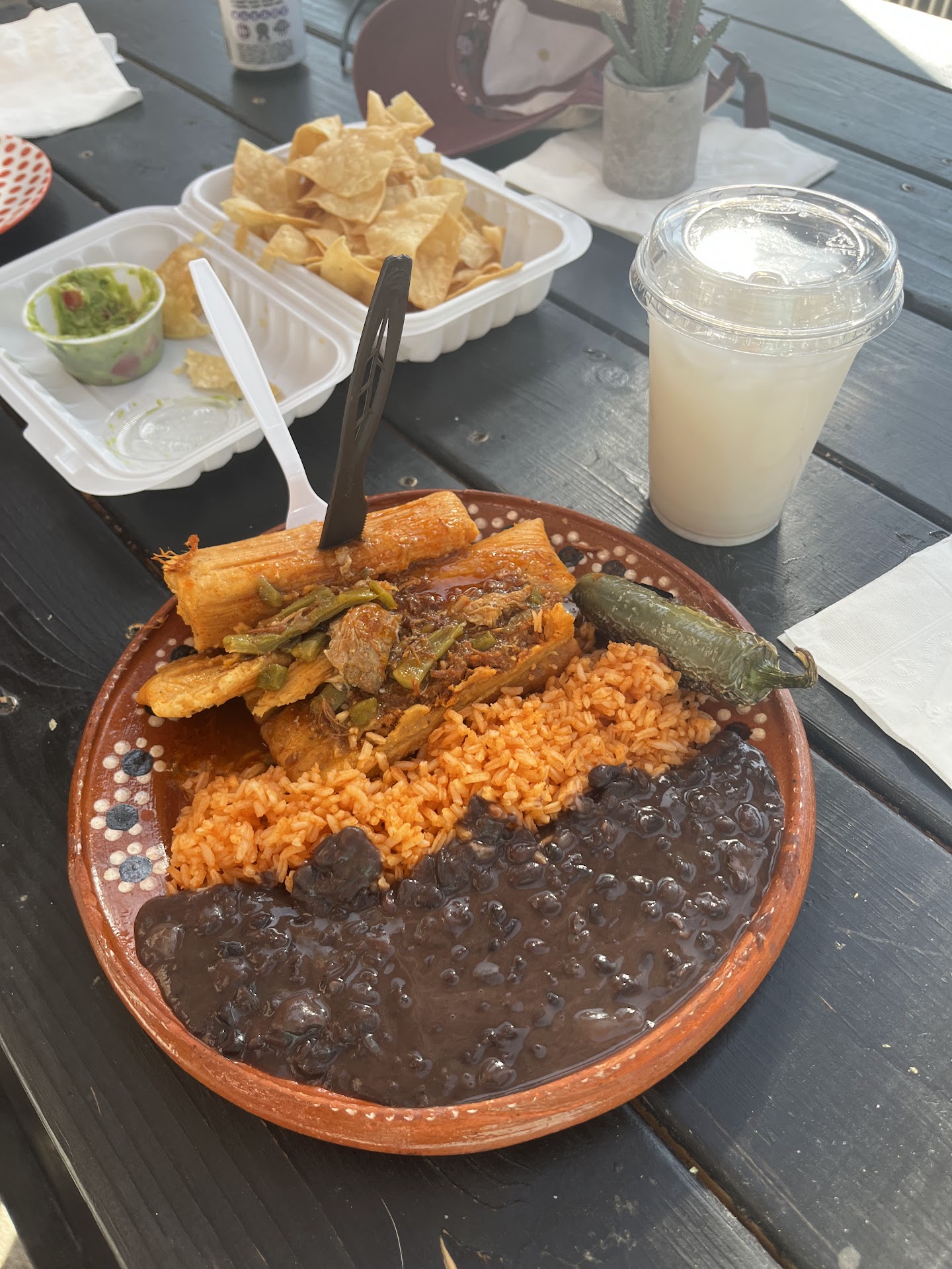 Read moreI love this place and I now specifically have it bookmarked for future visits to Portland. There is food displayed for customers to visually enjoy and get an idea of what is available. Omg, the smell alone is enough to get one salivating. I was so excited seeing that they served grilled and salted jalapeños. I ordered the tamales combo and enjoyed each bite. The chips and Guacamole is an essential to have with your meal. The horchata is a bit watered down but it is refreshing to have on the side with a hot meal. There is covered seating with a mural along the wall that is a great way to pass time as you chew. Such friendly service and I felt right at home there. Great...