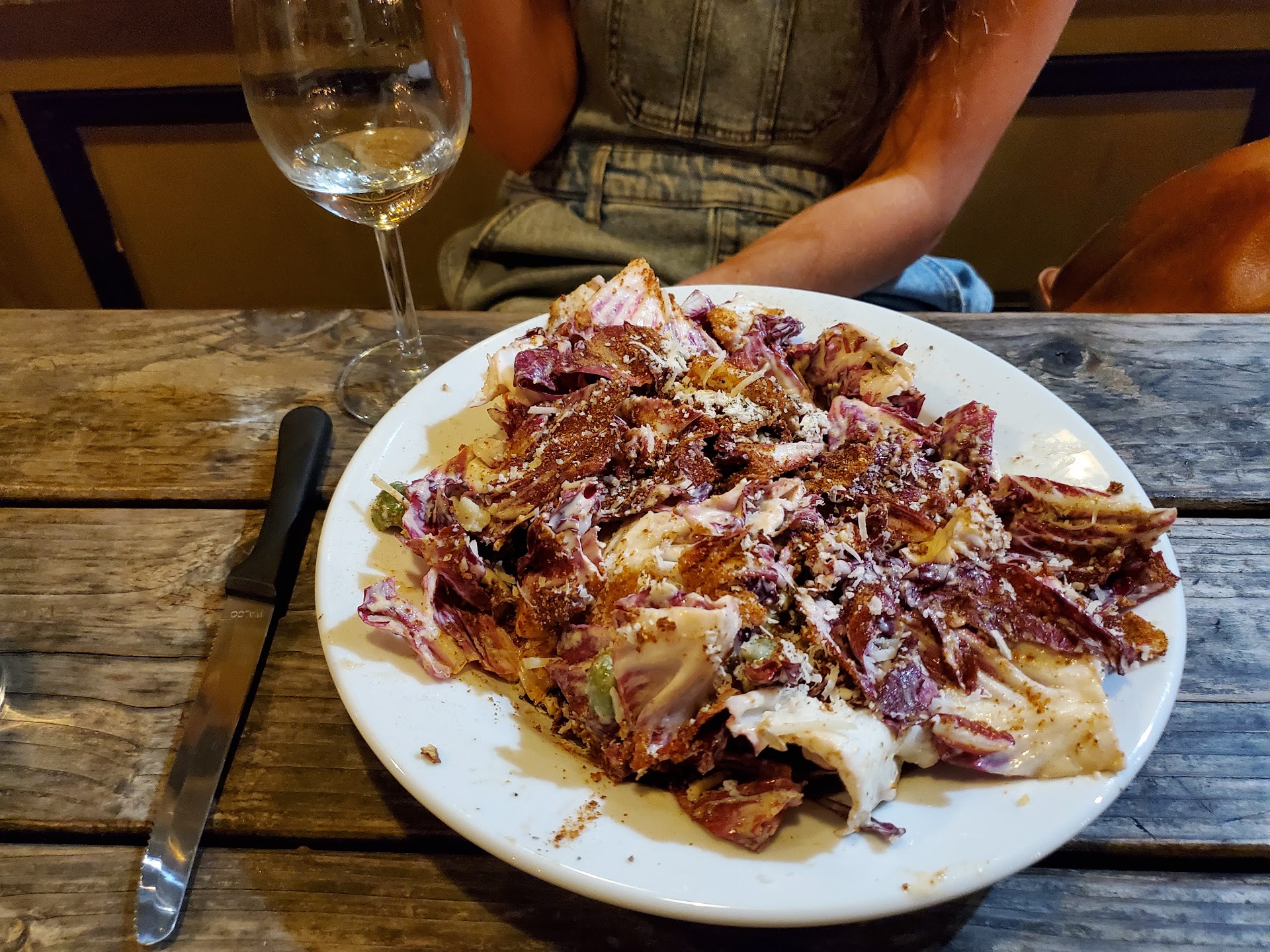 Saraveza is a nice neighborhood bar and grill in Northeast on Killingworth Street. Be sure to bring your phone because the menu and payment system is all electronic. See the staff to get a table and use the QR code to view rhe menu, set up a tab, combine diners, order and pay the bill. Seeing that you have almost no interaction with the wait staff I wonder what the tipping protocol is for this service mechanism. I tipped my usual but that doesn't seem right. Anyway once you get to the menu, the choices are varied but you need to add them to your cart to see the full descriptions. Note that there are only certain options included in he listed price. Other options, including fries, have upcharges associated with them. The beer selection is not extensive but adequate and had some nice choices. You can request a sample if you are not sure. The large radicchio salad was indeed large and tasty enough but the dressing is somewhat bland. The primary reason for the 3 star rating was the brisket sandwich. I was intrigued by the description of in-house smoked brisket and the sauces but what I got was not good. The presentation was basically a 1/2" thick.slab of meat on a bun. The first bite was all fat. The second had some meat but more fat. I took the sandwich apart and, as you can see from the photo, more than half was fat. Seeing as I was pretty hungry, I shredded what little meat there was, put it back on the roll, and ate. The waitress did come by to ask how the meals were but made no effort to correct the deficiency. Perhaps this is what should be expected for this dish. Overall pricing of $10-15 for a sandwich/entree seems to be in line with the area. Saraveza has been around since 2008 so it's likely I had a bad experience so stop in to enjoy a brew and sandwich. I know I won't have the brisket again. Feel free to...