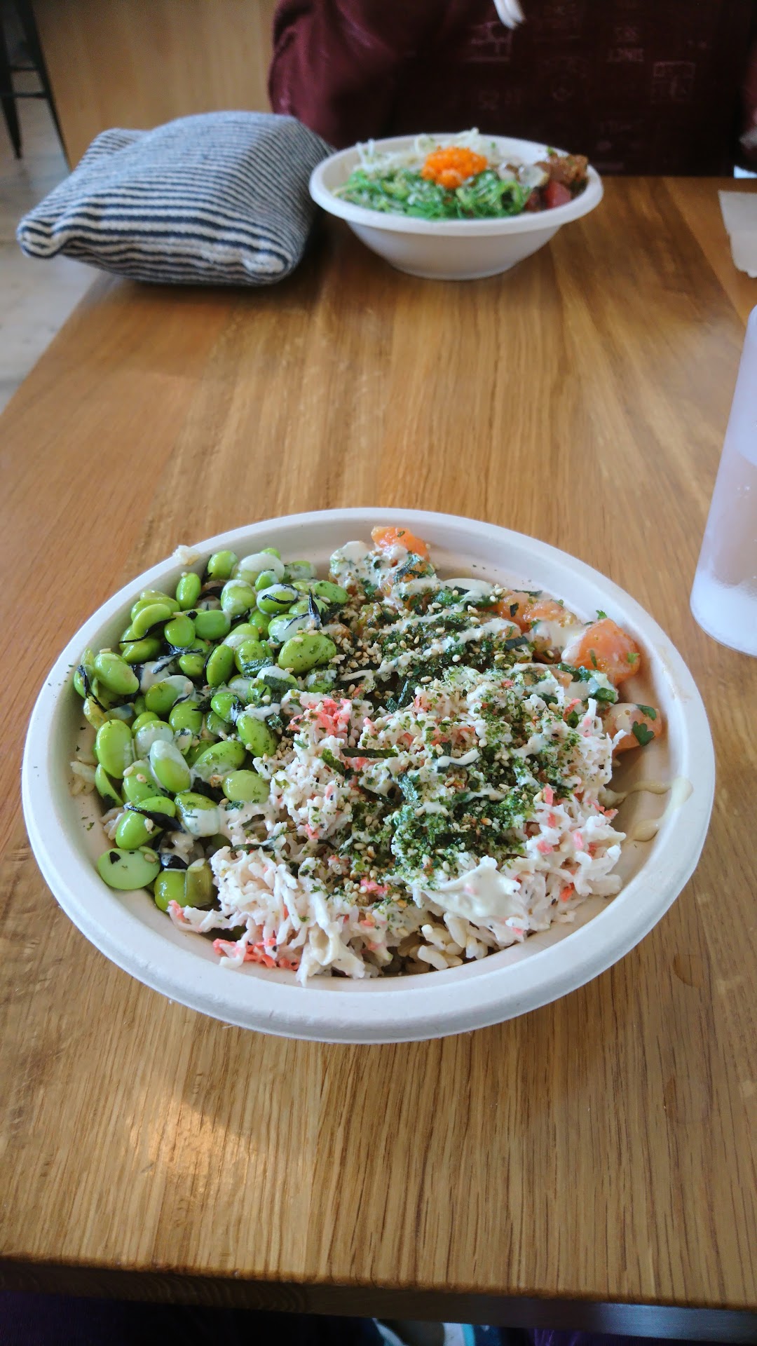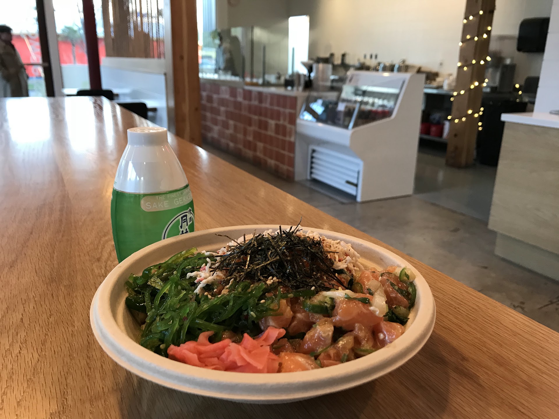 Read moreThe Poke bowls are delicious. I do wish they had more variety, in side dishes and that they had options that rely a bit less on acidic ingredients. I'm always delighted about their poached eggs, which go great on salmon or steelhead, with masago to provide saltiness. It's awesome that they have both Brown rice and a salad base (as alternatives to their white rice) for their bowls, and that the salad features kale. Unexpectedly, they also sell bone broth! There is an odd pricing factor though. The bowl with 2 sides has a set price. They charge you another dollar for the poached egg, but then will only give you one side for the cost of the bowl. Me? I figure I'm paying the price for the bowl with 2 sides PLUS another buck for the egg. But, no, that's not how it works, and I go there less often now that I've learned this...