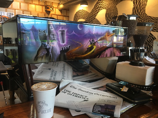 Pretty disappointing first experience here. I’ve been hearing a lot of really great stuff about See See over the years. As a 20 year motorcycle rider, I participate in a lot of local city motorcycle events, motorcycle rides, and the very popular One Moto Show in Portland every year which See See is a sponsor of. See See is very well known amongst the community. So I stopped in to check it out. My experience and review is more specifically related to the moto shop. Not the actual coffee bar, which I received a nice cup of coffee and a friendly attitude. I can’t say the same thing regarding the shop. When I walked in there, there was an employee behind the counter buried in her phone, and had no desire to address myself or my guest. Did she not look up to say hello as we walked around. I kid you not probably the entire 10 minutes that we poked around in there, not one time did she say anything to us. Every time we glanced over, she was still buried in her phone. So not a very great first experience. Had we been more engaged, I probably would’ve bought a few things. But seeing that there was no desire to actually show any sort of form of customer service, we left...