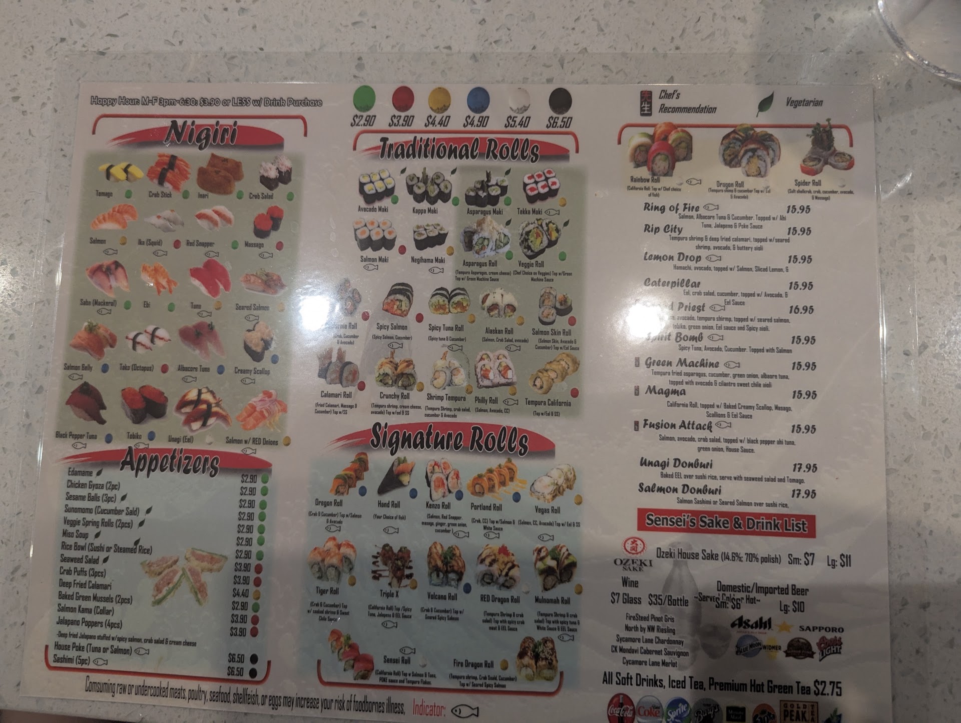 I gave this restaurant 1* for the waitress/cashier's intend for trying to trick me by not honoring their happy hour pricing.