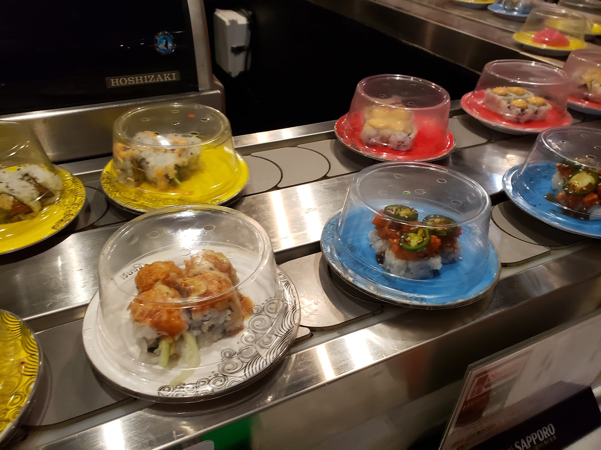 Read moreFirst time at a sushi bar with a conveyor belt. Delightful, to say the least. Super fun lunch sitting at the bar and just grabbing whatever looked good going by. Spoke with the chefs who were more than happy to put in any item not going around. The food was super fresh with hot items still hot and cold items still cold. Eating with 2 people and filled up more than we should've, but still got out of there for around $50. Clean and easy/bright atmosphere, and the service was excellent! Definitely a place to go back to. Ended on Black pepper tuna nigiri...this was so good I could've just eaten 10 plates...