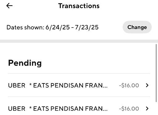 To find out later, I saw 2 charges for $16 at this restaurant in my bank account. I tried to reach out to the Uber support. Twice. Both support specialists said that they will not be able to refund me for my first order, (that I did not receive) because the restaurant did not cancel it on their end.