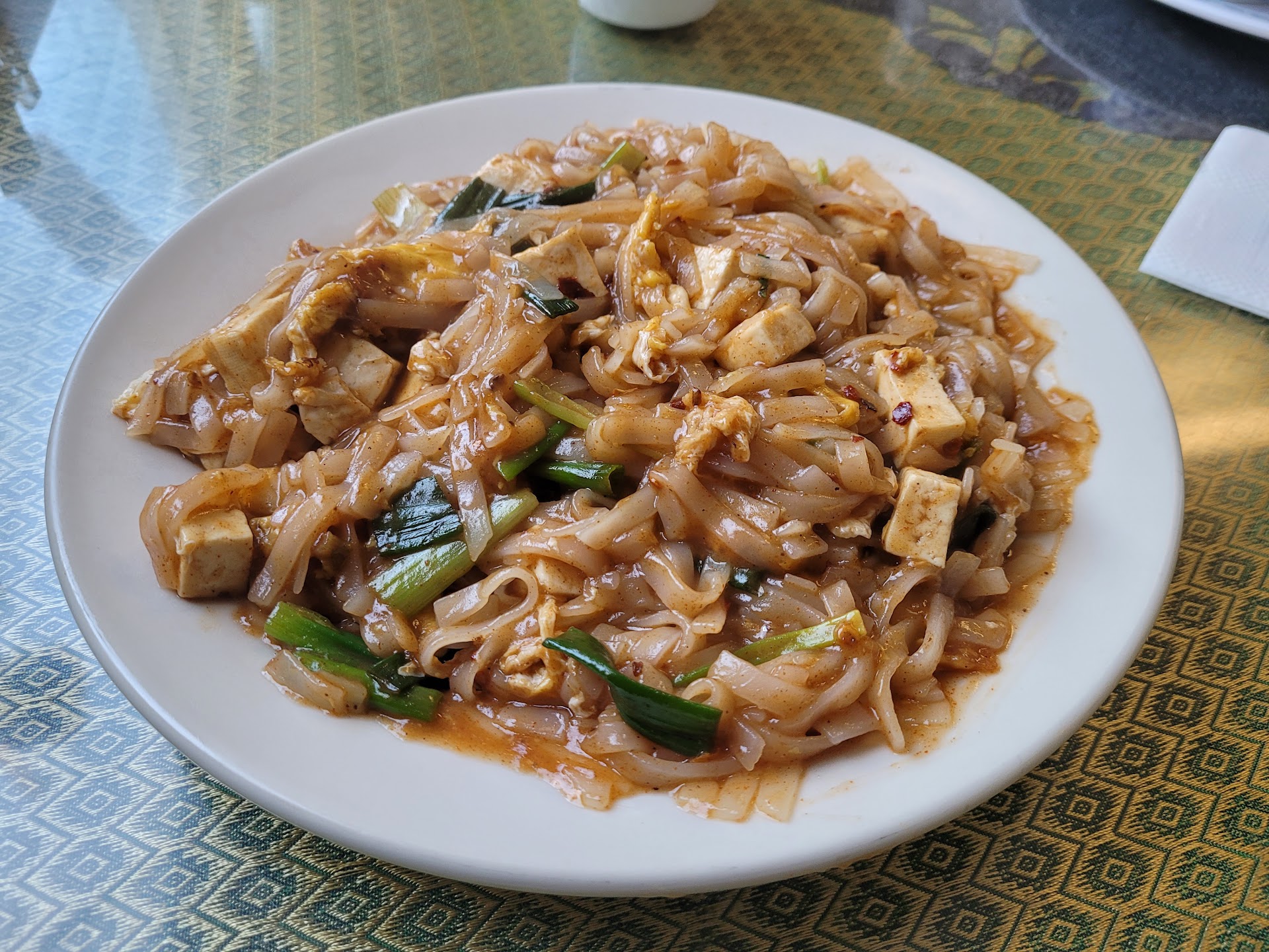 i got a chicken pad thai, no veg, no peanut (5/5) and an order of the potstickers (4/5). the pad thai was fantastic, very authentic and none of that ketchup-y stuff some places have. chicken was also tender and flavorful. the potstickers were also great, nice and crunchy outside with delicious inside.