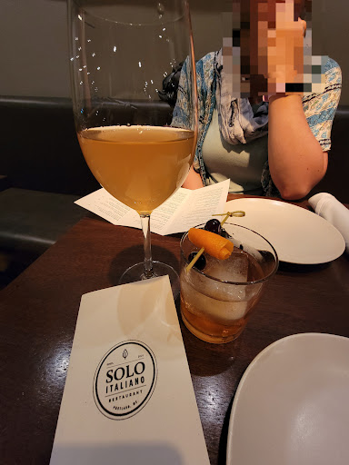 PRETENTIOUS! If you are looking for overpriced and under delivered, then you have come to the right place! Solo belongs in downtown LA, not on Commercial Street in Portland! The worst Italian culinary experience ever! I use to live in Naples and Sicily and just came back from Tyrol in March, this place would not make it anywhere Iâve been in Italy. Where to start? Well in my experience a true Italian meal is about two things, large portion size and rich flavors, which this place misses on completely. My wife ordered their award winning pesto dish and in a word it âdisappointedâ. The pasta is this flat soggy noodle that looked more like a lasagna noodle. The pesto sauce itself was bland and was missing something simple, a pinch of salt. My wife cut the pasta in half and in a half again and after sharing a bite with me she was done after three bites. No meat is served with this dish and it was $38. I had a hard time choosing off their menu because of the limited amount of choices and the menu itself was a tiny folded piece of paper in small print. I settled on a pork and beef stuffed pasta dish. This dish was disgusting. In fairness, The pasta itself was cooked perfectly and you could tell it was homemade, but it tasted like a combination of bleach mixed with fennel seeds. The dish was served with neither a white or red sauce, but came with just a hint of olive oil and a sprinkling of grated parmesan cheese. There were only ten tiny bite size pieces in total, just slightly larger than a traditional Italian tortellini. This meal was also $38. We ordered two drinks. My wife ordered a Hendricks gin and tonic with a lime and I ordered the âAcadiaâ house specialty drink. My drink tasted nothing like the description . The menu said a blueberry lavender combination with rum . It was served straight up and had a red color with a bay leaf floating on top. It didnât taste like a rum drink and I think the color should have been blue or purple not red. I put myself through college in Maine by working at a couple of high end French restaurants in the Mid-coast area as a server and bartender. The one thing I learned back then and that has stuck with me all these years is you can tell how good a place is by the quality of the fruit served with the drinks. So my wifeâs lime in her gin and tonic had a big brown spot on it. Rotten! It just shows a lack of attention to detail. The bread service was nothing spectacular. Two tiny pieces of focaccia and two thinly sliced pieces of wheat bread with olive oil. The two hostesses when we arrived for our reservation didnât smile and fumbled around for an eternity on their IPad trying to find us an open table. The restaurant seems large and roomy, but as we were escorted to our table I was astonished to see our table was jammed between two other two tops and it was like we were suddenly party of six. The whole time we were there the couple to our left conversation dominated our space. So, my plans of a quite romantic evening with my beautiful wife were instantly dashed, although they seemed like a nice couple. They were on a desert course when we sat and she was politely criticizing how bad her meal and desert was and how overblown the hype was on this place. Our server was a nice man from Italy, but his service was nothing spectacular and he never came back to offer us additional drinks or wine. It did seem the restaurant was lacking servers from my observation. To reiterate how small the portions truly were and Iâve never done this in my entire life, we paid and immediately went across commercial street, went up a few blocks to Elevation Burger and split a burger and fries. If you are expecting a true Italian experience like Trescaâs in the North End of Boston or our favorite Molise in Amesbury, Mass, you will be highly disappointed. If you are expecting pretentious downtown LA overpriced and underwhelming, then Solo is right...