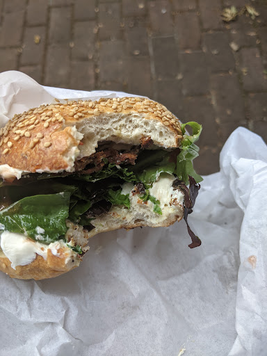 I went on a Friday around 0800. I ordered a bagel sandwhich (which had greens, bacon, jam, and cream cheese) on a sesame bagel. It was wonderful! They didn't skimo on any of the ingredients, and the bagel was crispy and chewy.