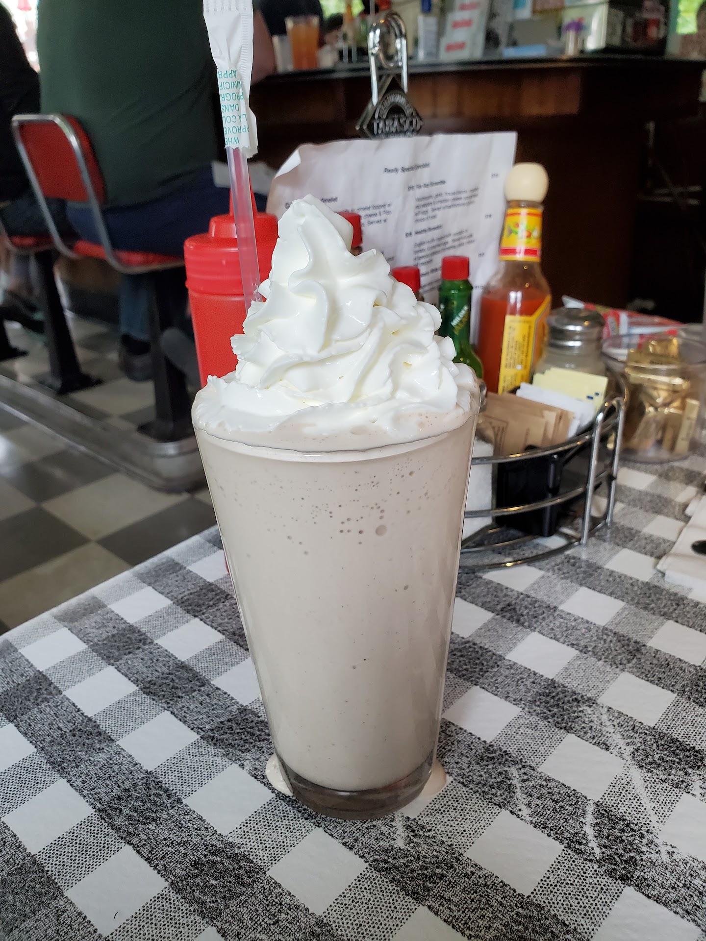 As it was closer to end of service, the two of us were offered the corner booth. Way to make folks feel like royalty! Pretty much all the other tables were taken in the main entry dining room. If they have Chocolate milkshakes on the menu it means I can have it with breakfast! We decided to split our orders. My friend ordered the biscuits and gravy. Our server let us know it's massive, they were correct! I ordered the chicken fried steak. Hilariously, my friend admitted they thought that was a chicken dish 🤣 They were pleasantly corrected... it's definitely not chicken. Both of our dishes were cooked and plated perfectly. Buttered toast for our runny sunnyside up and over easy eggs... absolutely the best combination.