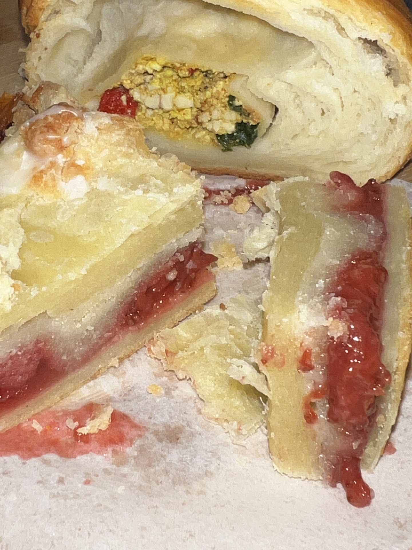 I recently got the chance to try the vegan croissant from Sweetpea, a local bakery and it was absolutely delicious! It was flaky and perfectly crunchy on the outside while being light and fluffy on the inside. The croissant had the perfect balance of sweet and savory flavors, and I was particularly impressed by the bold, but light balance of the buttery aroma. It paired perfectly with the pumpkin spice latte that topped everything off. Overall, this was the best vegan croissant I've ever tasted and I'm already looking forward to having...
