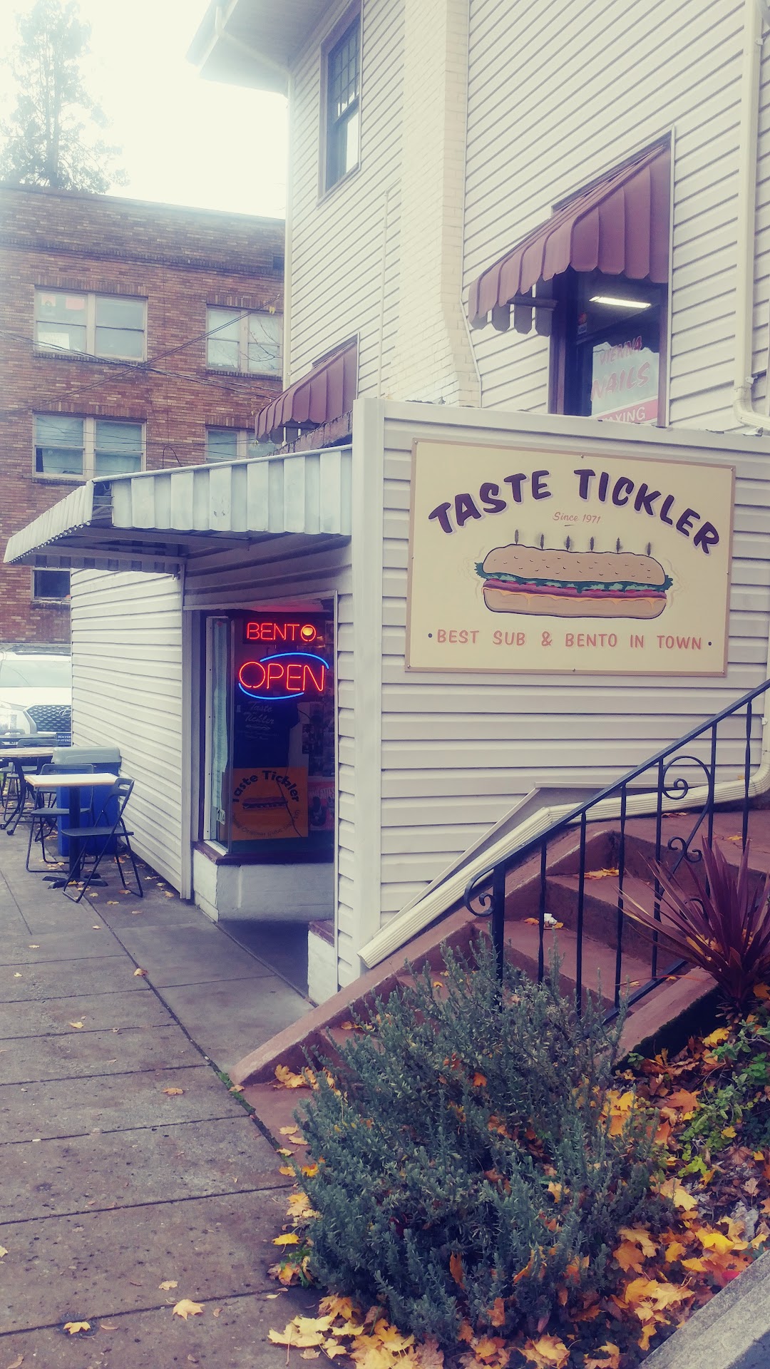 Read moreI was interested in having some Korean flavors in our food, so when we wound up at Taste Tickler, I was really puzzled. The whole place looks like windows and glazing from the seventies. However, there is a large board of loyal customers who have their photos on view. It is a sandwich shop, which also does Bento boxes. I ordered Bulgogi in a sub, and the meat had some flavor; then I realized that whereas I would normally have a bowl with rice and vegetables under my Bulgogi, here I had the sub roll as a holder. I think everyone's sandwich would benefit from a better bun. Mine was doughy and tasteless. However, regulars were driving up and jumping out to get their daily sandwich to take home or back to work. There are a few plastic tables and chairs outside, with a seventies sort of awning above them. It was raining when we came out to eat. We rearranged the chairs, and pulled the awing closer so it covered our heads and food. The atmosphere of having a Korean-influenced sandwich in the clean, fresh Portland air in a light drizzle---that's a lot of atmosphere. We enjoyed it. A neighborhood...