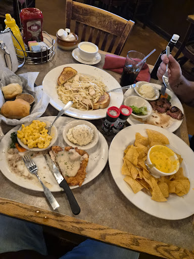 Read moreIf you’re staying at the hotel behind this restaurant don’t go here out of convenience. Trust the other reviews stating over priced mediocre food. We decided to go ahead and try it and it has been a regretful experience. We ordered food to go on their website. We got a call stating they didn’t have onion rings and didn’t offer anything else. Not even when I asked if there was something else we could get instead. They said there was nothing else at the same price point. Then when we get a text message stating the order is ready, once we arrive they say they do not have the chicken fried steak we ordered either. Once again no offer of replacing with something else. My husband had to ask if there was another plate he could get instead since they didn’t have the chicken fried steak and they reluctantly agreed to that and to also replace the onion rings with the queso again only after my husband asked for this. I’ve worked in food service and it’s just so surprising they were just wanting to void and not try to replace the items that they didn’t have with something else on their menu. We ordered the Avocado chicken salad one of the most underwhelming salads I’ve had. We ordered some of the appetizers including the quesadilla, the combo and the chips and queso they reluctantly sold us. The quesadilla for some reason was filled with onions. My mistake if I missed that on the menu. The combo was good and the chips with queso were good as well. My husbands steak dinner was not the best. The steak was tough. Maybe the restaurant feels like they don’t have to try hard to give good customer service. Possibly because they get their fair share of tourist customers so they probably won’t be back anyway. I would try to find somewhere else to eat. Wish we had gotten...