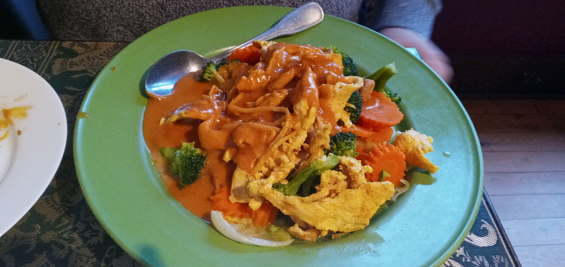 Has nice outside seating... Our server complained about a hurt ankle that is was hard for her to walk.. Maybe why she had bad guest services.. The food was okay.. My yellow curry looked like they used a bag of baby carrots Didn't even try to cut them or blend.. Also there was russet potatoes chunks in my...