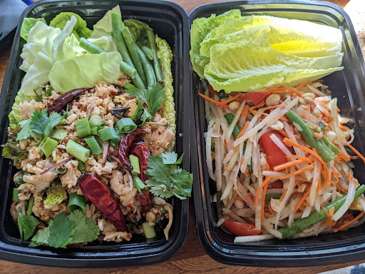 I've been eating Nu & Jenny's food since 2003 when they opened their cart downtown and am so happy that they've made the jump to this perfect space just a few blocks from Mt. Tabor Park. Their flavors are a huge cut above the typical thai food you will find around town. Everything has balance and is never too sweet or heavy. Very bright flavors that pop and make you want more. Today we had a Panang curry with shrimp & Larb salad. Both were stellar. The Larb salad was perfectly tangy, slightly sweet & savory with just enogh heat (I ordered medium.) Kafir lime leaves, delicately sliced onion, perfectly cooked ground chicken..the juice alone from this dish is to die for! The sticky rice was perfect and soaked up those juices. The Panang curry was wonderfully balanced and delicious. The shrimp, green beans, peppers and squash were perfectly prepared. Everything, including squash which I normally don't really enjoy, was cooked to that point of still having a slight bit of firmness. Nothing over-cooked or slimy. Just perfection. Considering their flawless flavors, clean & elegant new space and very reasonable prices, there's nowhere else I'd rather go...