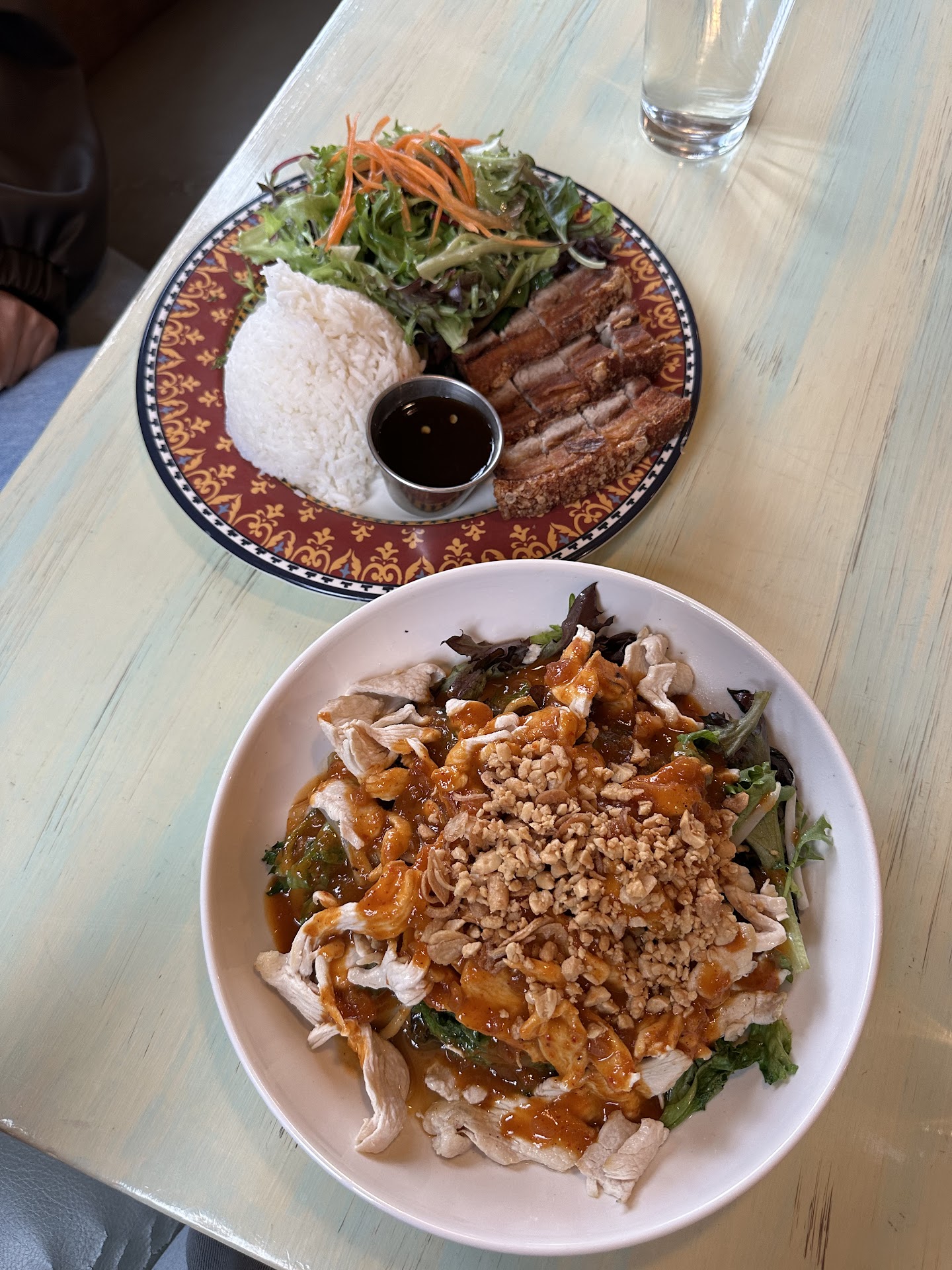 Their menu is pretty simple, with a variety of Thai rice, noodle, and soup dishes (there were no salads on the menu, unfortunately). Their prices and portions are good! I got their pra ram noodles with chicken while my friend got their crispy pork belly. Both dishes were delicious and very comforting. I've never had pra ram noodles before, and really enjoyed it—it was nutty, flavorful, and came with lots of veggies which I loved. Overall, a good casual spot for Thai food...