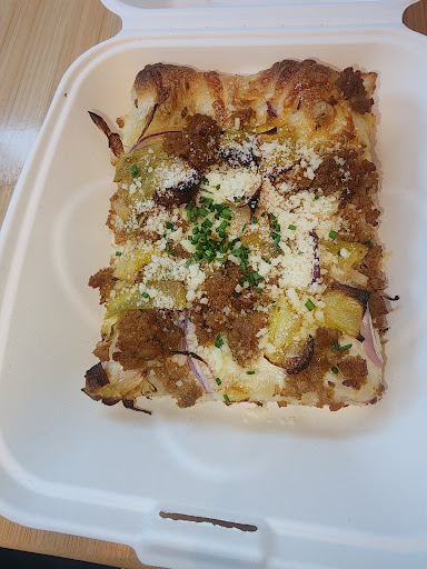 Read moreTwo of the three focaccia we got were excellent. The broccoli and sausage slice we got was almost completely raw, thin, wet dough, loaded with way too much greasy stuff on top and was very unpleasant (there was nowhere available to eat on site so by the time we got to cut into it we couldn't take it back). We probably would have enjoyed this place better if we had caught them when it was less busy. They don't seem to have any sort of system in place to advise on how long your order will take and whether there might be seating available. We felt rushed ordering with no time to assess the chances of having a table and then had to have them box our food when there was no table available to eat at when it came out of the kitchen. With only a few tables and people staying at them to leisurely enjoy a bottle of wine, there was far more food coming out then places to sit. Thankfully we had plastic cutlery and a waterproof blanket in the car to go eat in a nearby park (which would be much more pleasant in...