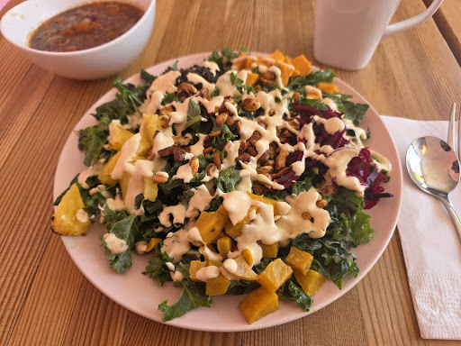 What makes this place truly special is that it's 100% vegan and gluten-free, yet there's zero compromise on flavor. I know one reviewer mentioned small portions, but I found mine incredibly satisfying, and the care that goes into every dish more than justifies the cost. You're supporting a woman-owned local business that prioritizes sustainable practices and creates a genuine bright spot in the community.