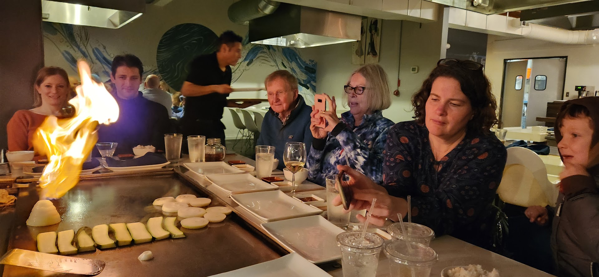 Here's the meal: We show up on time for our reservation as a party of 6. We are seated with a party of 2 which is typical for these restaurants. The server suggests not ordering appetizers as the miso soup, salads, then veggies and meat from the entre is plenty. We decline apps. The party of two orders apps. We should have. The server asks 3 or 4 times how the table is paying (2 unrelated groups, 2 checks). He then has to re-ask about our drinks. He then takes the dinner order. Asks again about who is with whom. Then he literally comes back 4 times to ask about the entre orders. We repeat the order each time. 6 people 6 entres. Quite easy. When the chef comes to cook the server still had missed one of us entirely. 6 people, 5 orders.