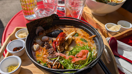 Puts Afuri to shame!! I’ve lived in Portland for 27 years and have been on the hunt for the best ramen in the city for a hot minute now. Tomo is semi new, and damn is it good. You order on a touch pad up front, and food was ready in under 5 min. We ordered the karage and tonkotsu ramen. The broth was absolutely perfect, the pork melted in your mouth. The noodles were just the right of chewy! They use quail eggs instead of chicken eggs and it was a cool touch, although you don’t get that gooey yolk/broth situation. The karage was great too: crispy and flavorful. Everything was huge portion sizes!!