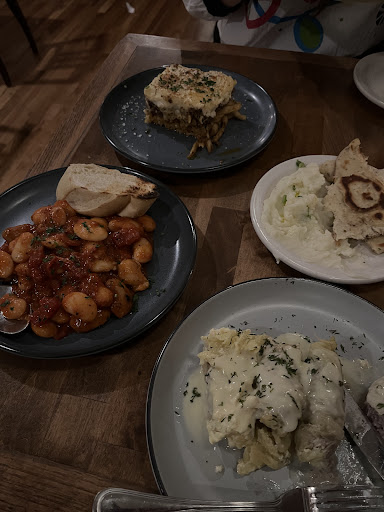 Food was a hit and more unique compared to some Mediterranean places I’ve been. It’s really focused on Greek fair specifically. We tried the 3 dips which were all fantastic and went well with other dishes in the meal. The sausage also happened to be a standout along with the oh so fresh pita bread. The bechamel noodle dish was tasty, and a great portion, but was a little hit one note by the end of the dish. Skewers were tasty but also could have maybe had a bit more seasoning to really pop with flavor. All in all though everything was tasty and felt fresh which I appreciated and the 4 dishes were perfect size for us.