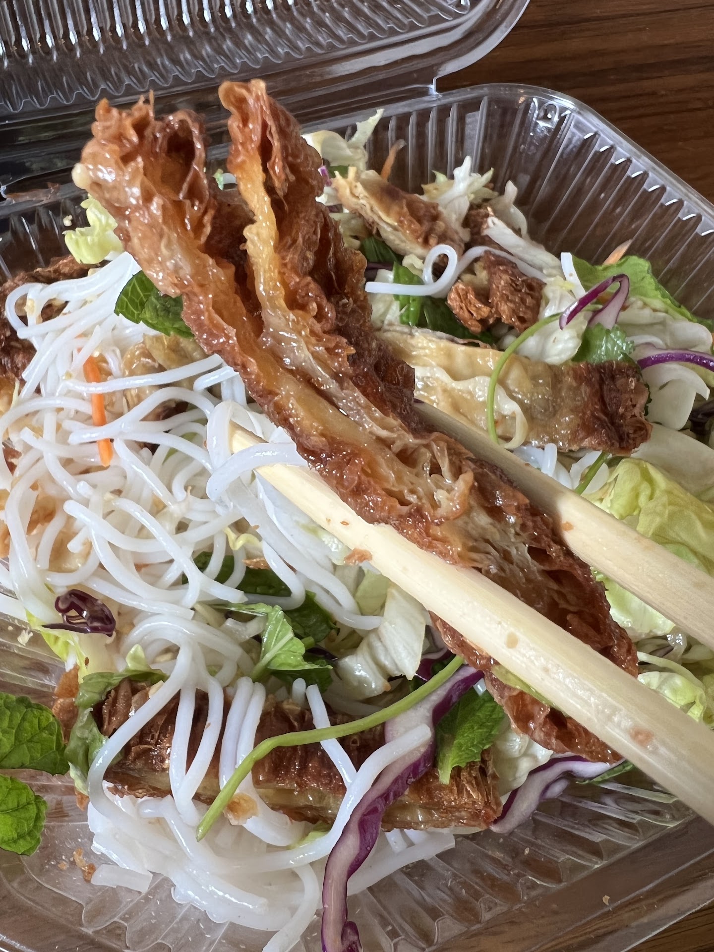 But that's not all, my cherished and cheap $2 steamed buns have been ruined. They where practically a meal to themselves and filled with delightfully seasoned vegetables. The last two times I ordered them the rice flour was a sticky mess that was inedible in places and the filling was bland and had the most foul texture.