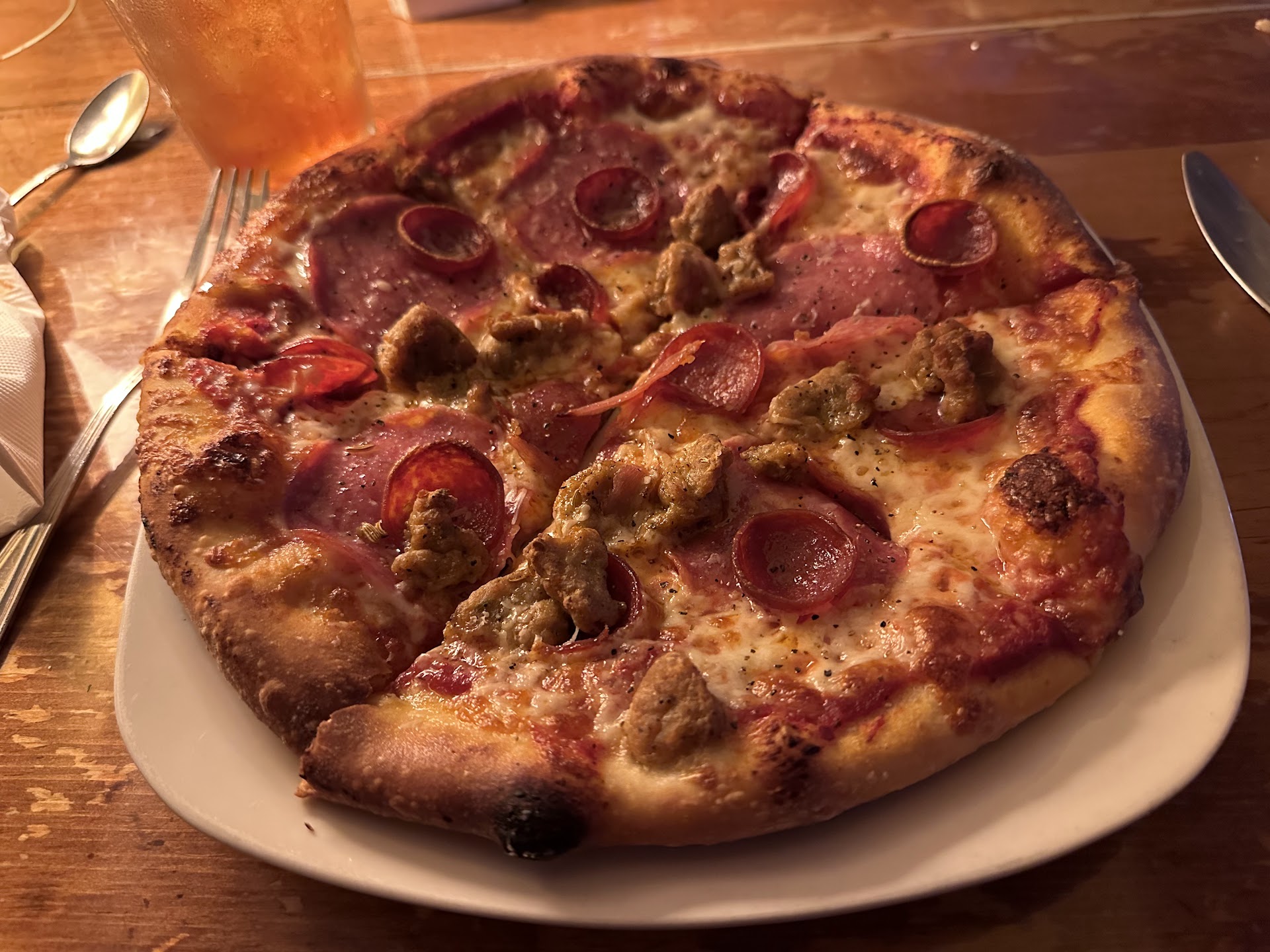 Third, let’s talk about the food. I started with their homemade meatballs which were some of the best I’ve ever eaten. Our family got a large Sicilian Pizza and it was amazing. (Much better than Ken’s) Perfect amount of toppings and the crust had been cooked perfectly. Not too hard and not too soft.