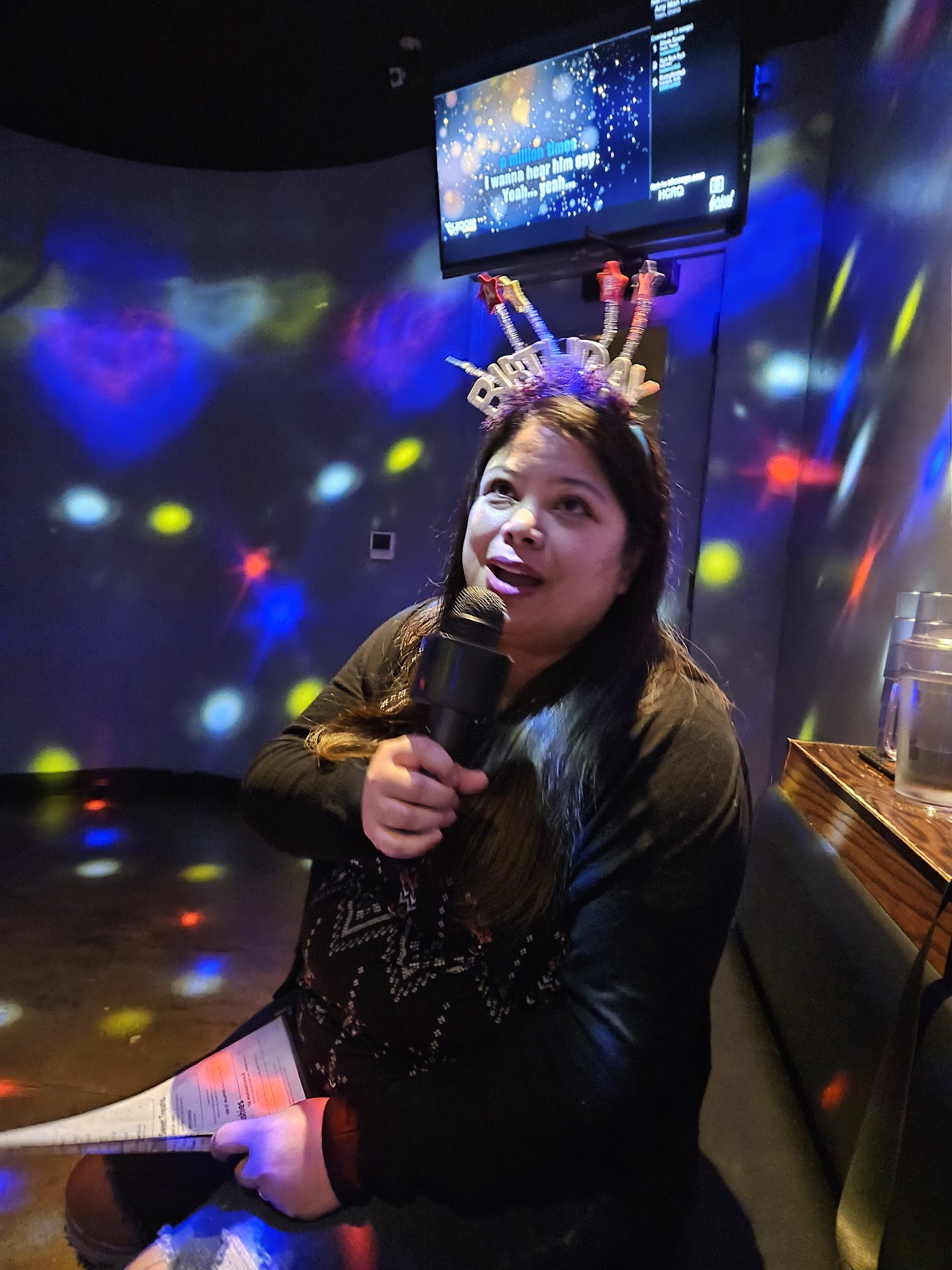 Read moreI went here for my birthday and reserved their larger room which accommodates 30 people. The room is spacious with plenty of seating and comfortably fit about 20 of us. There were wrap around seats with tables in front plus two smaller tables and chairs. The digital set up is super easy to use so everyone can queue songs, call for server assistance, or use the disco ball. The larger room has 3 microphones and a sweet disco ball you can choose to use or not, also controlled with the vbsongs login code they give you and we had no technical issues. Yay! Their happy hour menu was also fantastic! Had a variety of drinks and the most popular foods so we didn't need to spend an exorbitant amount on appetizers and snacks which was a lovely surprise. The service we had was top notch and everyone was very friendly. I would absolutely come here again. The rates for the room were mlre than fair and the atmosphere was excellent. I do recommend for a party or even for a...
