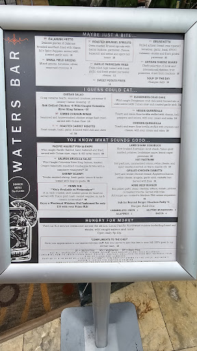 Read moreYou wouldn't necessarily expect to find a decent meal in your everyday hotel lobby, but you'd be wrong with Waters Bar and Grill. An unexpected Thanksgiving on the fly found us here (one of the few places still open and accepting customers), and we were pleasantly surprised. The de rigeur Thanksgiving dinner was what you'd expect, albeit with portions generous enough to feed at least two or three people. I opted for the Caesar salad with grilled salmon, and while a tad on the salty side, it did not disappoint. Again, generous portions. What sets Waters aside is the cheery and attentive staff -- imagine: a restaurant where people seem to be enjoying their jobs. The "can-do" spirit will...
