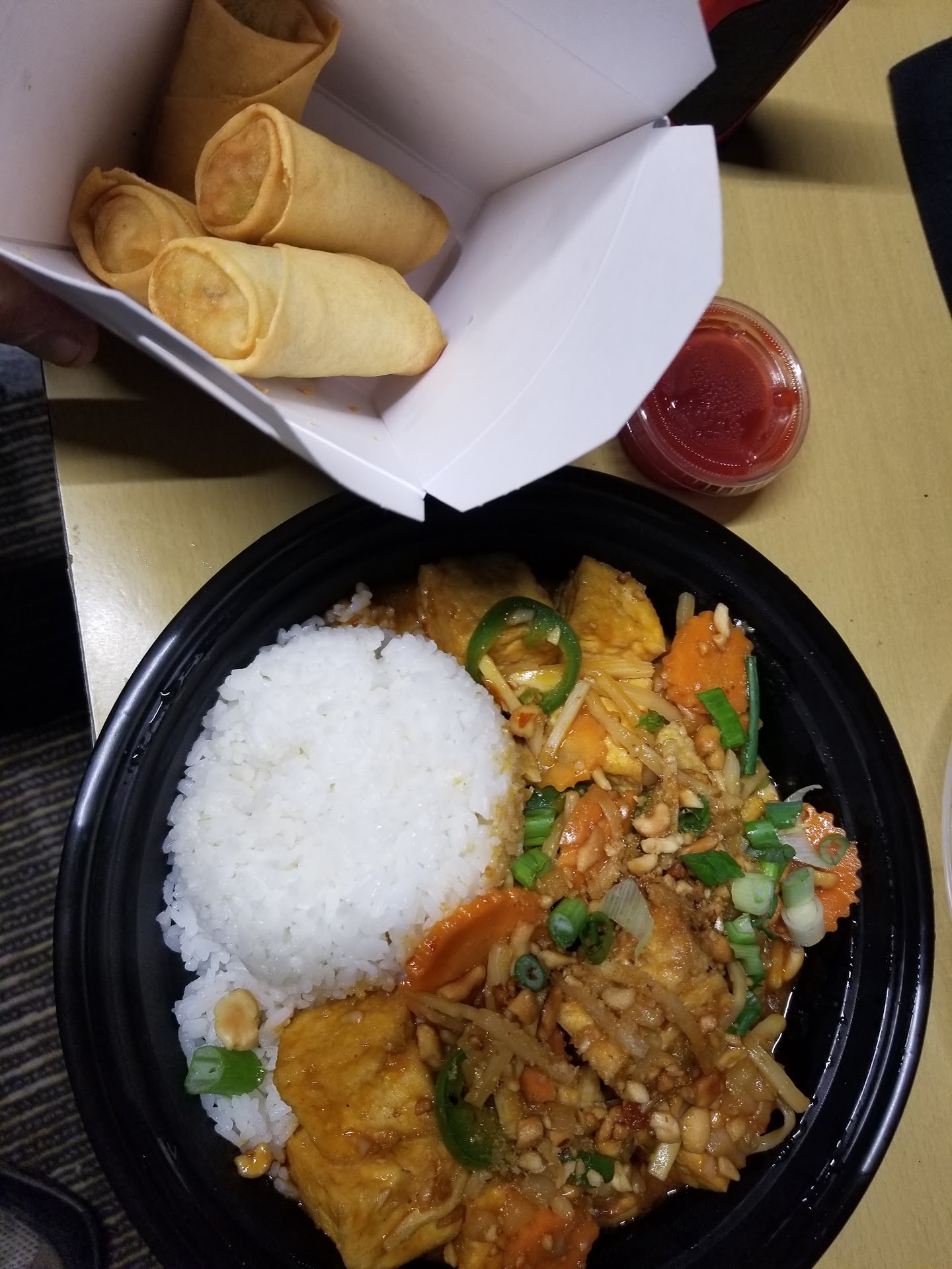 Read moreThe beef salad rolls were well made and tasty, making the visit worthwhile. The beef chow fun was below average: the beef has a good texture, however it was overly salty. In contrast, the sweet gravy seemed to be just poured over it. The contrast in taste was offensive. The chow fun noodles were great, thin with just the right al dente. There should be some color contrasting vegetables to balance out the smell and sight of food, but there wasn’t. The pot stickers were the typical grocery store type, at least they fried them thus upping their taste. Food was served quickly. I guess they assumed we were ordering takeout as no water was offered- that’s ok. I’d rather be served quickly, so they still earned 3 stars. Maybe ask if I want to takeout or eat...