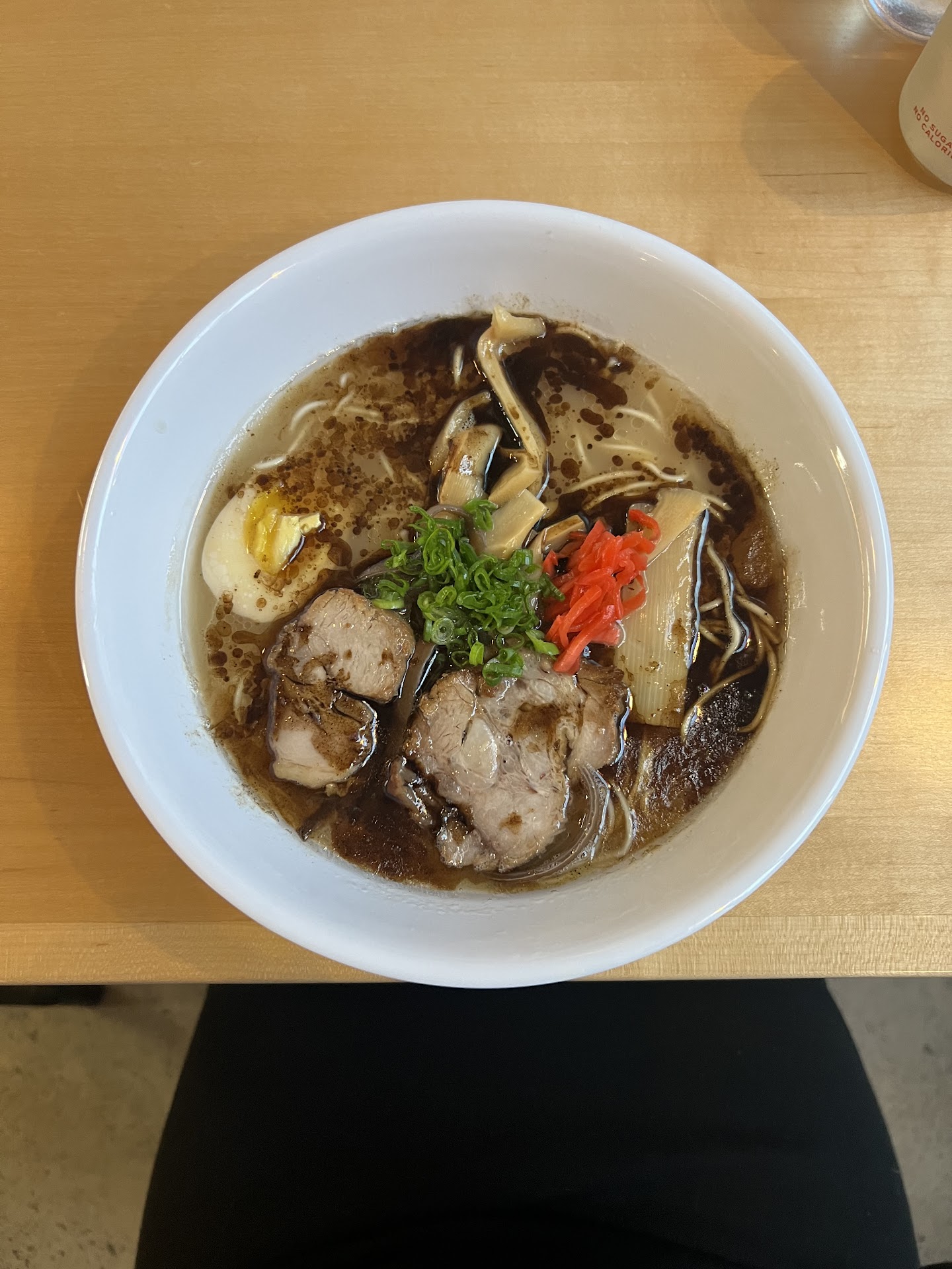 I ordered the Tonkotsu Ramen with Black Garlic Oil. When my order was being taken by the server, he was very kind, sweet, and informative. He provided us with a number, and we picked out a table and waited for our food. The wait time was not long, since it was not busy.