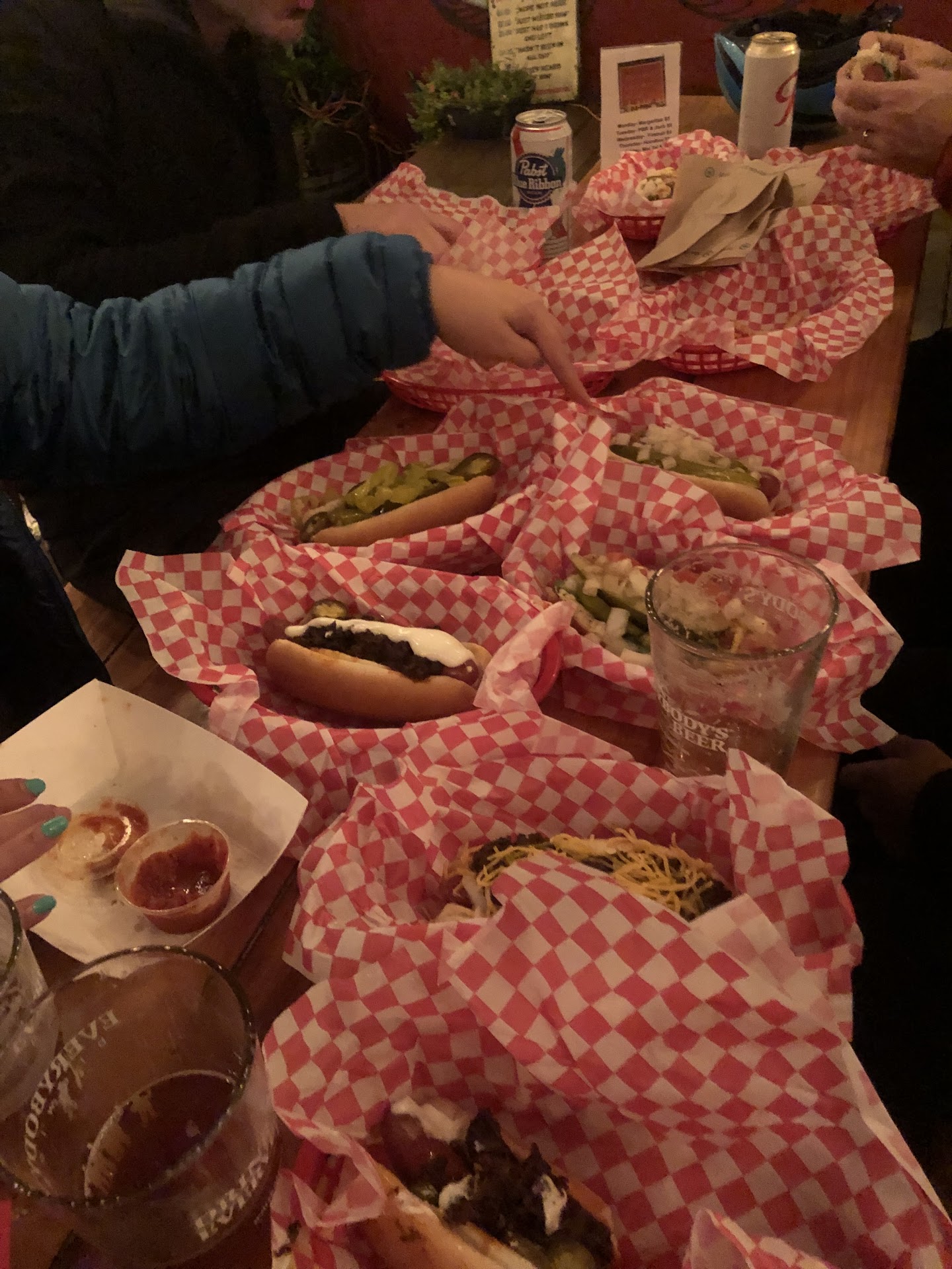 we ordered a cucumber marg, whiskey coke, chicago dog and a seattle dog. the guy forgot my cucumber marg but made my partners whiskey coke on the spot. i went in to ask about my drink but he seemed WAY too preoccupied with the zoo that was going on with the other patrons. when he finally brought it out it didn’t have a rim on it and had to ask for that, and then he brought out the fully prepared drink with literally no liquor in it (even tho their menu states in handwriting that all drinks have 2oz pours). he also charged us full price for the drinks during happy hour, which was only supposed to cost us $4 each. i had asked for cucumbers instead of sport peppers on my dog and didn’t get the cucumbers, and it didn’t even come on a poppy seed bun like it says. my partners seattle dog was slapped with two globs of cream cheese and wayyy too much onion. both of which, were super tiny and just meh. i will give the chicago dog points for green relish and that it does LOOK good.