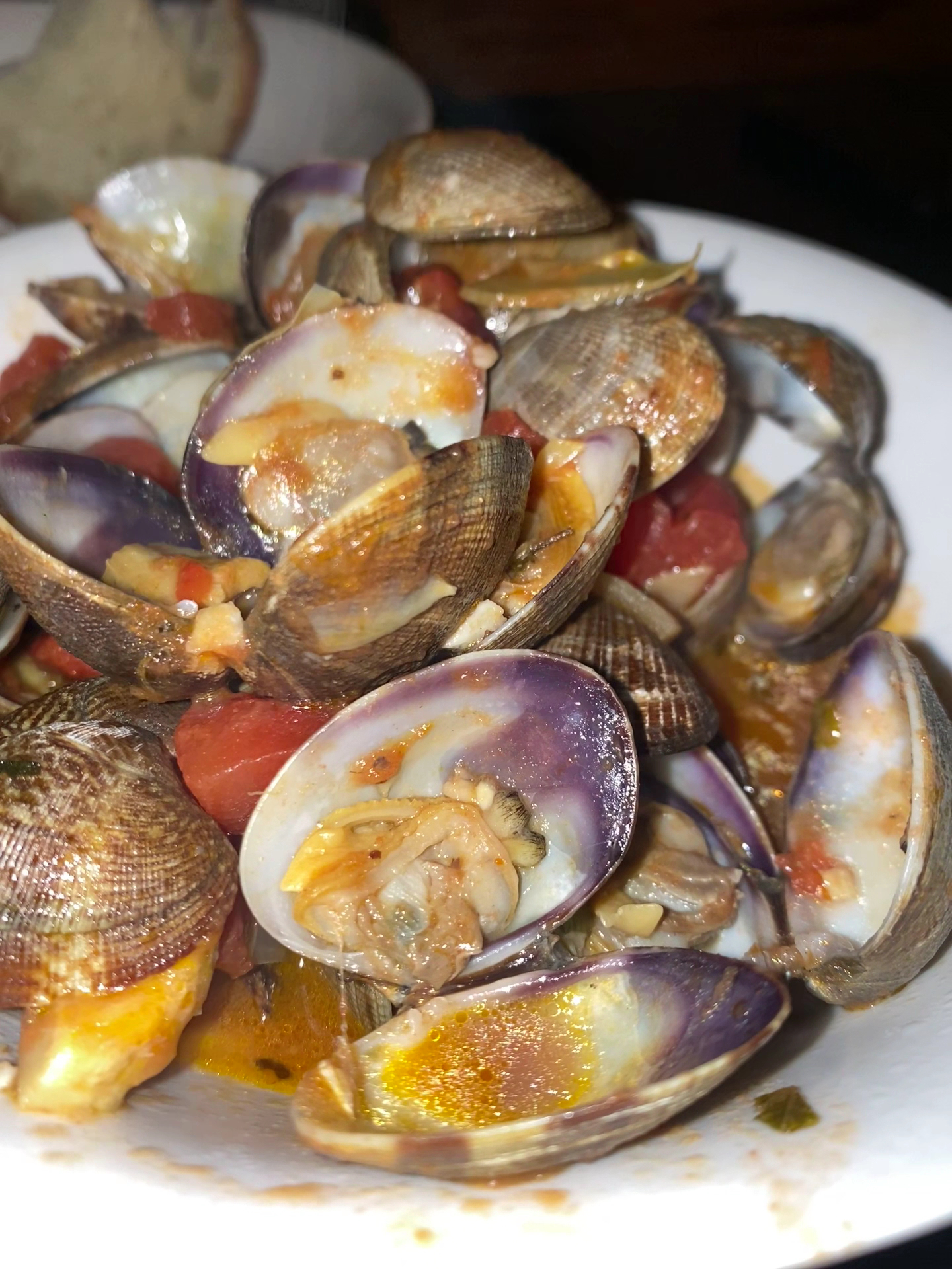 Steamed clams were a heaping pile of clams. We did some damage but couldn't finish off the dish because there were so many clams. Definitely order this to share. Also, 100% order it with bread. You will want the bread to soak up all the sauce from this dish. You will not regret it. I am used to steamed clams with white wine sauce, parsley, and garlic. This sauce was like that but with tomatoes.