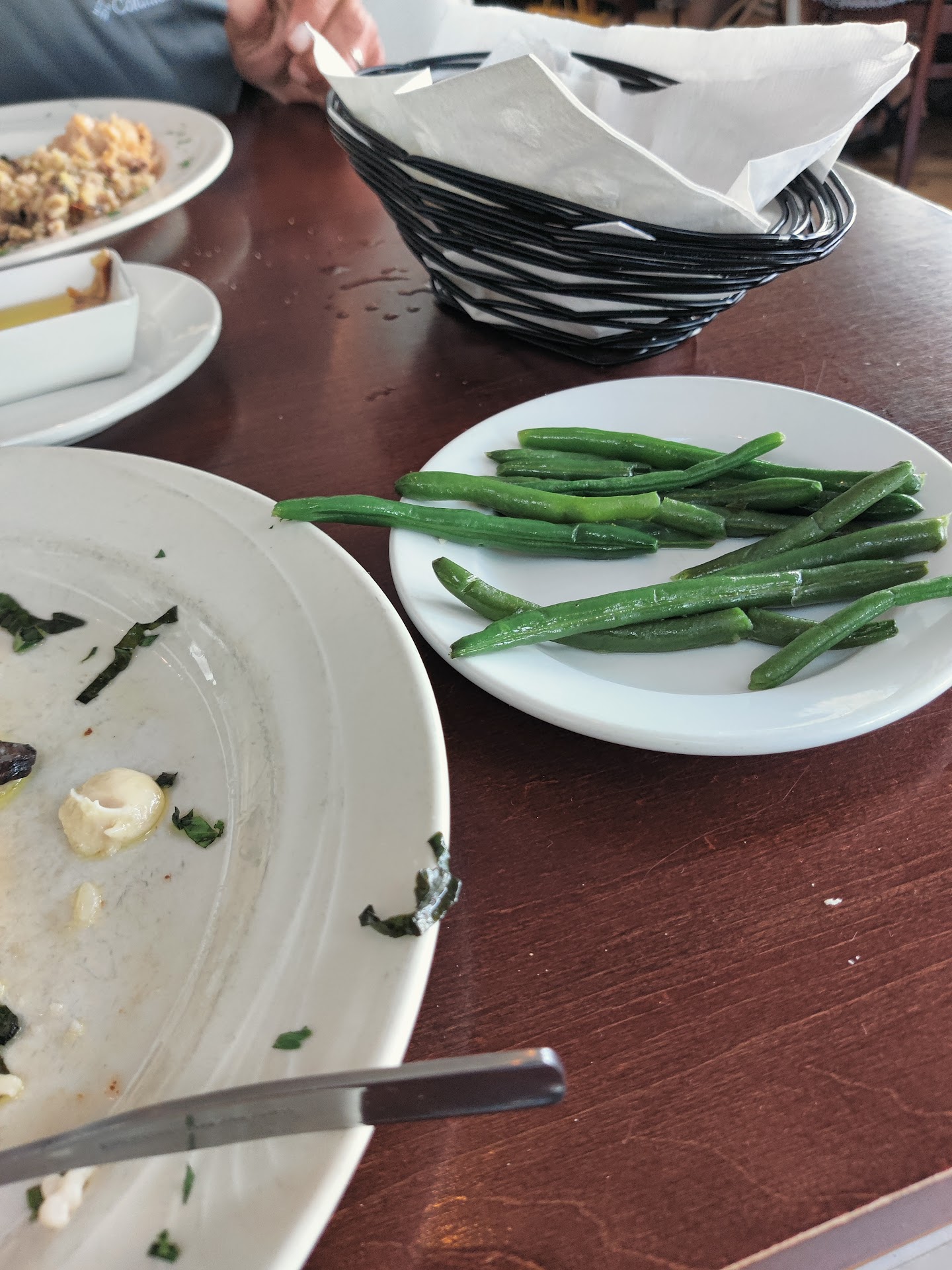 We all ordered drinks and enjoyed, and they kept water glasses full! Bread with roasted garlic in oil was offered and fantastic. We had the calamari for a table appetizer (would be enough for 4 to split) and we enjoyed the aioli on it better than the red sauce (we don't think it was tomato, red pepper maybe?). All our dinners were also great. We had surf n turf, a lobster pasta dish, and sweet potato salmon. Everyone enjoyed their meal. The broccoli was superb. If I had known, I would have asked for two servings of the broccoli instead of starch option (sweet potato, fingerling potato, or rice option tonight).