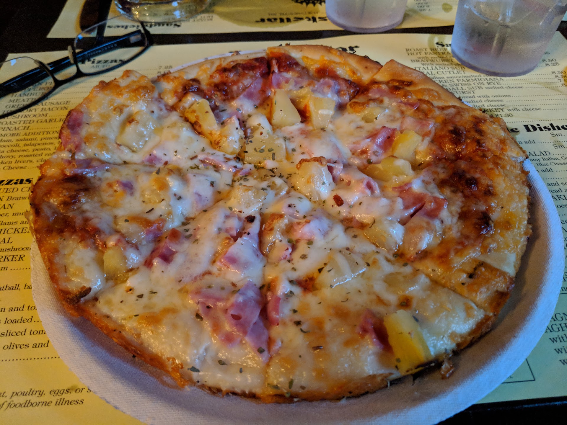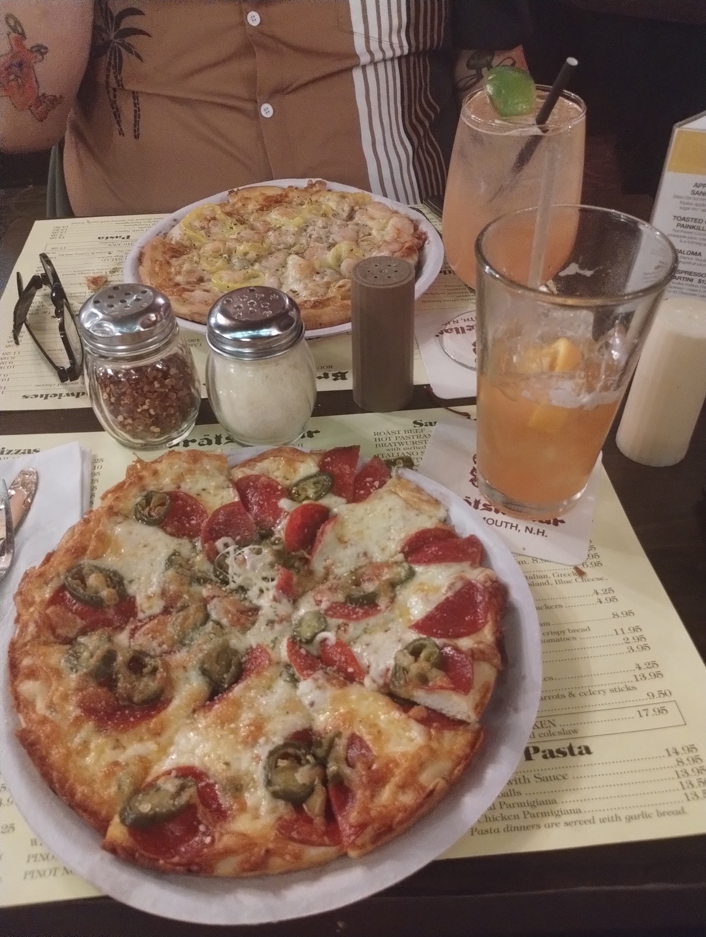 I recently visited this pub for the first time and was not that impressed. We saw a number of health violations while we were there. It’s all open so you can see you’re food being prepared and observed. One woman cutting someone’s sandwich with only one glove on one hand. Prior to that she was eating chips directly from the bucket of chips used to serve to customers. Never saw her wear gloves at all after that. No other food prep person was observed wearing gloves at all....including the guy digging spaghetti out of a bucket with yes, his BARE HANDS onto a serving plate for a customer. Sometimes while serving chips onto a plate for a customer if any were dropped they were placed on the customers plate anyway or back into the chip bucket. A server dropped someone’s dressing container on the floor and brushed it off OVER their plate of food before serving it to them. A bartender also eating chips out of the bucket barehanded, and further touching her nose and mouth then serving food to customers with those same hands. The guy cooking pizza was eating carrots using the same dressing/dip served to customers. I wish I had seen all this prior to eating the food. I don’t understand how anyone can say it’s the best pizza in town because Portsmouth certainly has much better pizza offerings. I’m not trying to sound bitter and I will be fair in saying that you’re not able to see the food prep in all restaurants you go to so I’m sure this happens in many places unseen. It’s also the only place I’ve ever been to that used the same glass for each drink I ordered, and I had 3 drinks. The ice was not refreshed from the first drink and still had the original lime in the glass. I had never seen that ever before. You may think I’m being overly critical but handling food, money, and touching several other things including their own mouths prior to touching the food served to you....really gave us something to think about. Sorry, but will most likely not...