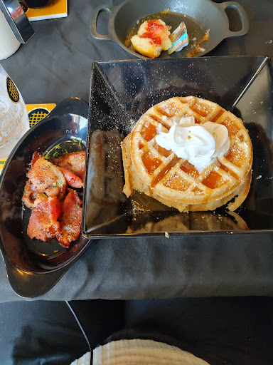 Read moreNot up to par for the price. We arrived 20 min after opening on Father's day to an empty room. Seated quick and drunk orders taken quick. My wife and I each ordered a coffee and she wanted a water also. Her water arrived and almost 10 min later one cup of coffee came to the table. I ordered some doughnuts and chicken and waffle dish, my wife wanted a peach cobbler cinnamon roll. Like another reviewer pointed out things came out sparse. The doughnuts were mini pancakes in an awful presentation, not doughnuts at all. Chicken and waffle was cut up nuggets in a waffle cone, nothing Belgium about it. My wife's cinnamon roll came out well after I had finished and was completely raw dough. This all compounded when there was no coffee or water refills offered a standard for any restaurant. I asked for water near the end of my meal only to take a drink and notice something green frozen into my ice. The sting was the bill. 43 bucks before tip. The 17 bucks for an embarrassing chicken and waffle cone and is crazy. And this was brought up by someone else previously. Still charging for raw dough and the kicker is the paying for tap water. Oh and don't forget the credit card fee. For the approximate 50 bucks for two people there are far better experiences in the area. Save your...