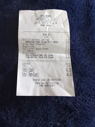 Read moreI'm always on the hunt for the coolest new spots, and I just had the most amazing lunch meeting at Carte Brunch! Seriously, this place is giving all the main character energy it promises! First off, the vibe? Quaint. Just righ for a power lunch or just a cool hang with the fam. The presentation of everything was top-tier, like, practically works of art on a plate. You know I'm all about that aesthetic, and Carte Brunch delivered! I went with the Bird & Bougie and OMG, it was everything. That golden fried chicken stuffed in a Belgian waffle cone? Pure genius. And for a side, I couldn't resist the Mac Me Later – creamy, dreamy, baked mac & cheese with those crispy bits on top? Yes, please! Washed it all down with a classic sweet tea, because some things just hit different. But let's talk about the service, fam. Beyond. Personable, attentive, and just genuinely cool people. I got to chat with the owner, and she were was great! So inspiring to hear her story. Plus, I met her 12 year old son who was helping out, and let me just say, this young man was impressive, smart and super polite. You love to see it! Honestly, Carte Brunch is a whole mood. From the delicious food to the incredible service and the awesome people behind it, it's a total win. You KNOW I'll be back for more! If you're looking for your next brunch (or lunch!) spot that's got killer food and even better vibes, you HAVE to check out Carte Brunch. Highly, highly recommend! #CarteBrunch #BrunchGoals #Foodie #LunchMeeting #MustTry #SupportLocal #MainCharacterEnergy...