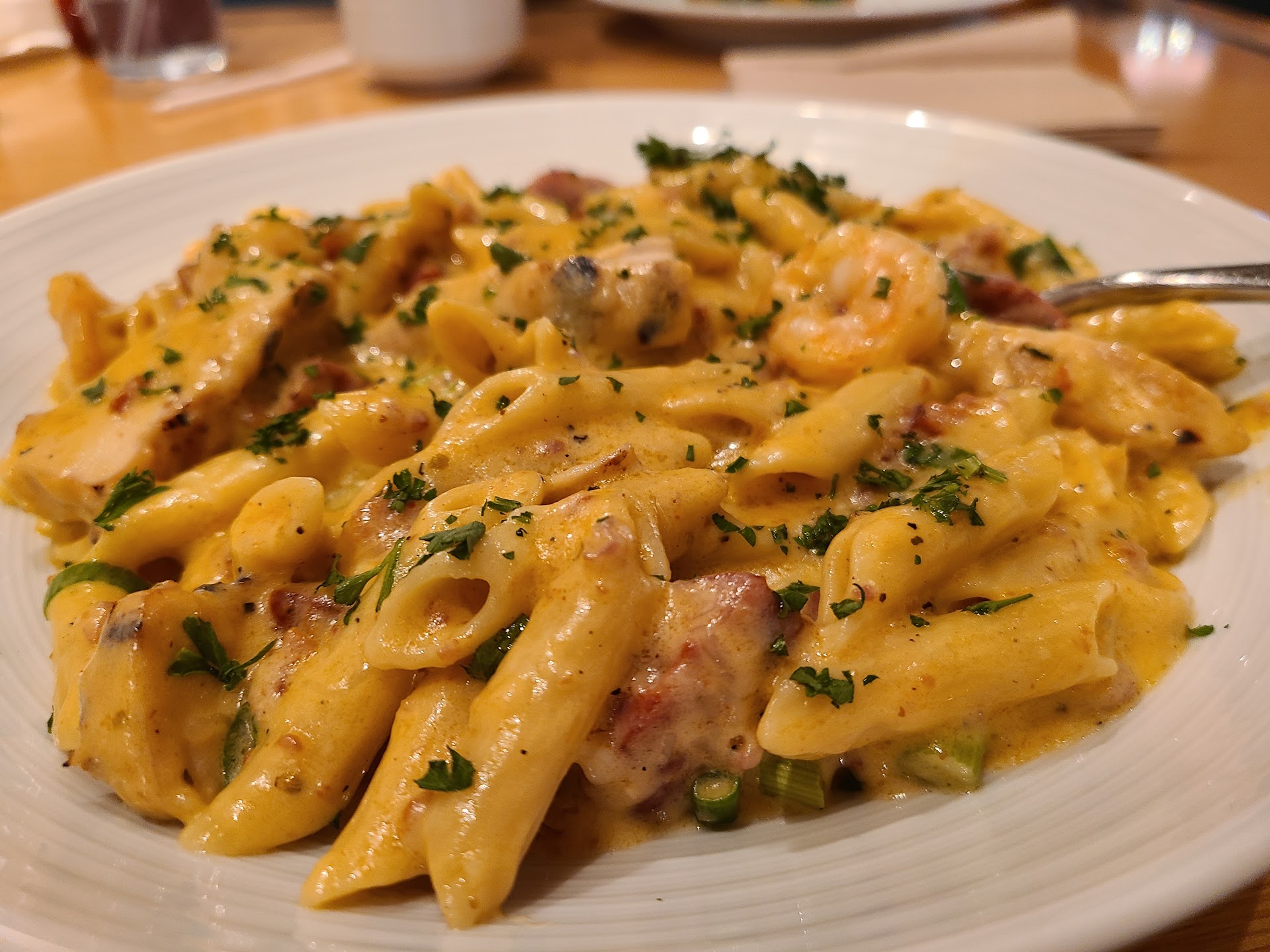Read moreThe ribs were really good. The Mac n cheese was the best I've had in a restaurant. The Salmon was really good. The service was terrible. It took a while for someone to come over and take our drink order. Once that was done she came back and started taking our food order. Right in the middle of taking our order a group walked in and started joking with our waitress like they knew each other. She left our table, WHILE TAKING OUR ORDER, and sat them down right behind me in another booth. She finally came back to finish taking our order. She spent a LOT of time at that table chatting. She was walking back to the kitchen past our table and, while on the run, asked everything was OK at our table. She barely slowed down. Tge table behind us got their food before us. They were done eating and out the door before we got boxes for our leftovers. She was not a young kid. So, she knows (or should have known) how to serve tables. Go for the food DON'T expect good...